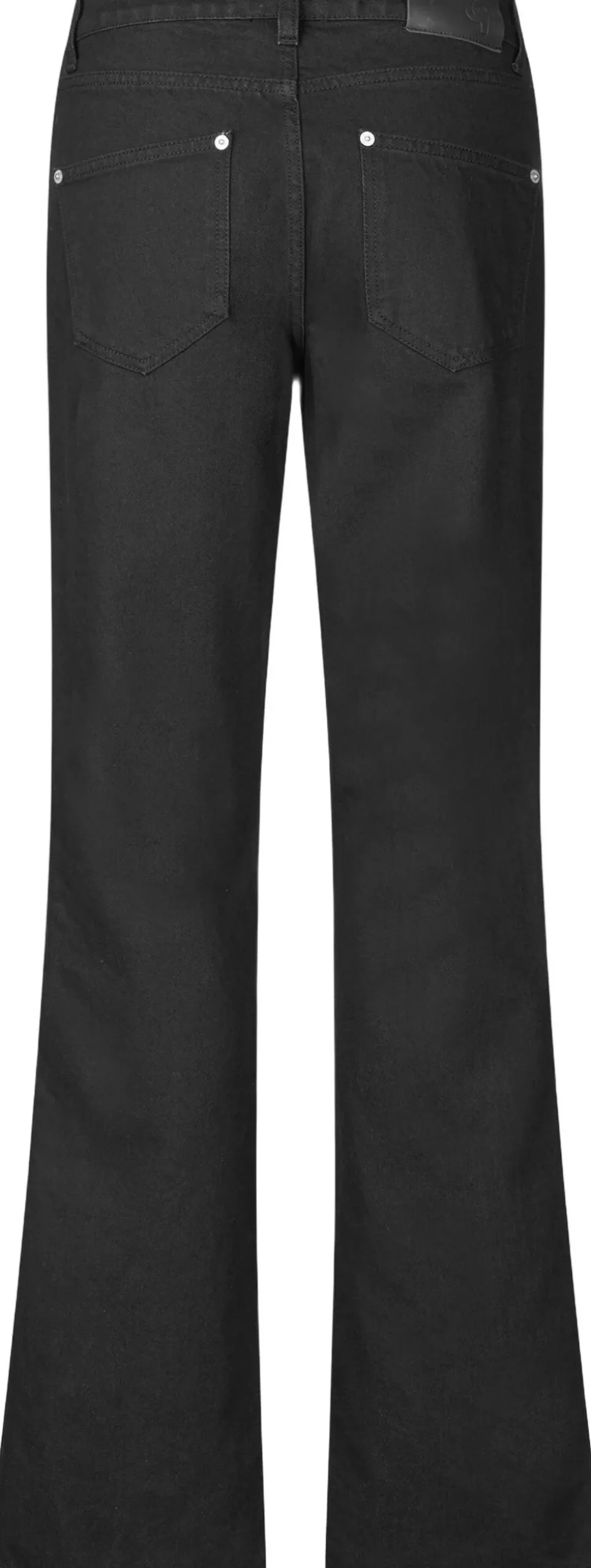 Sorte jeans med lige ben. Fremstillet i bomuldsdenim med en dyb sort vask og tone-i-tone-syninger. De har skjult lynlåslukning og knaplukning i taljen. Stil med fem lommer. Sølvfarvet knap og nitter med logo. Normal talje med vide, lige ben