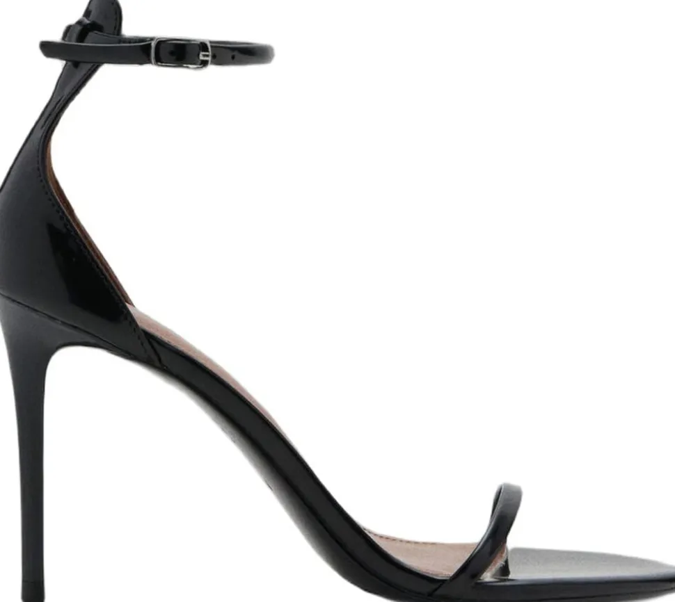 Patentlædereffekt, Stribet Design, Åben tå, Stiletto-hæl, Ankelremslukning med metalspænde, 9,5 cm hæl