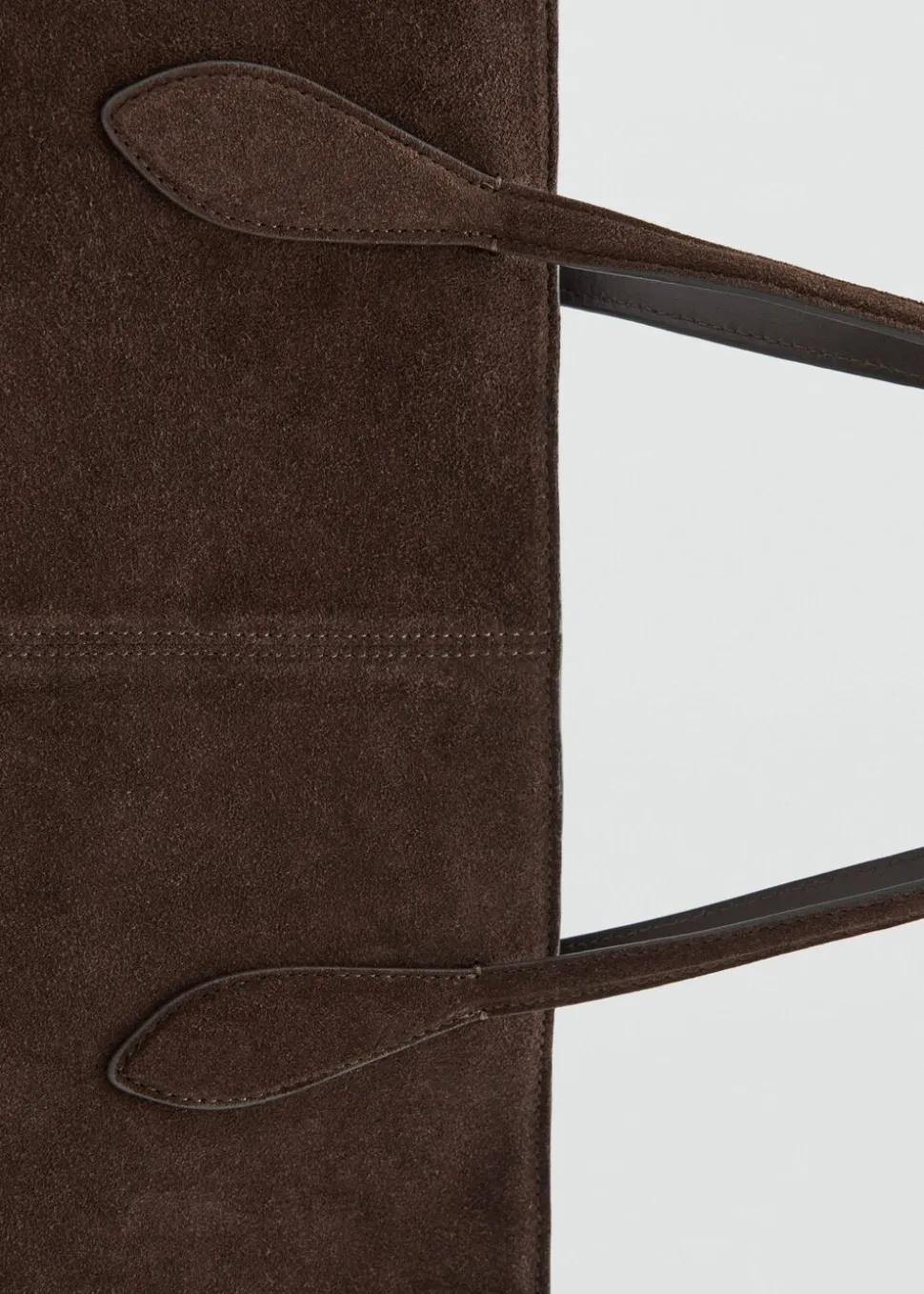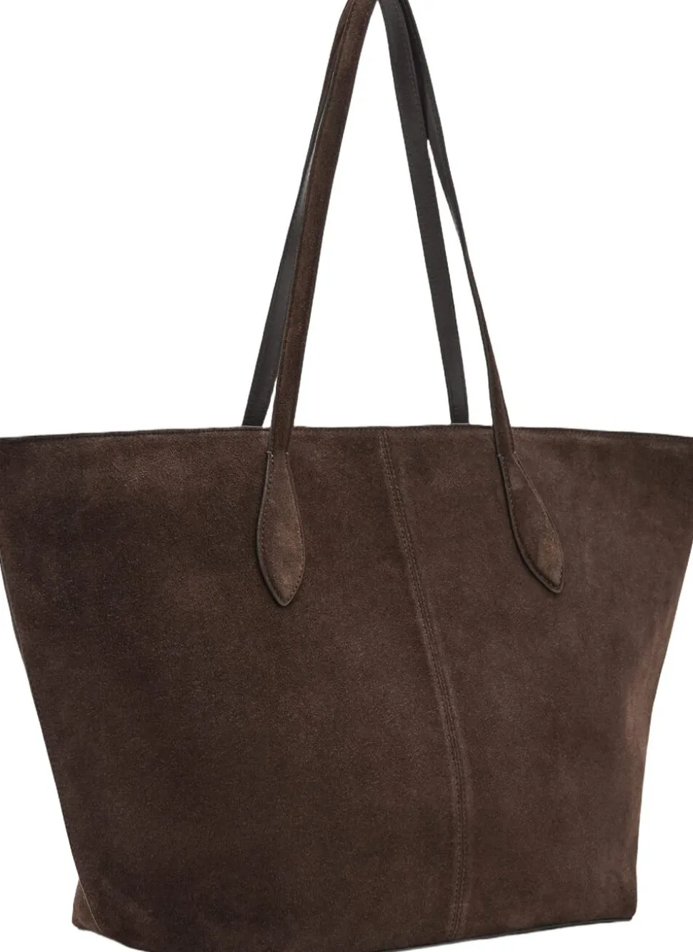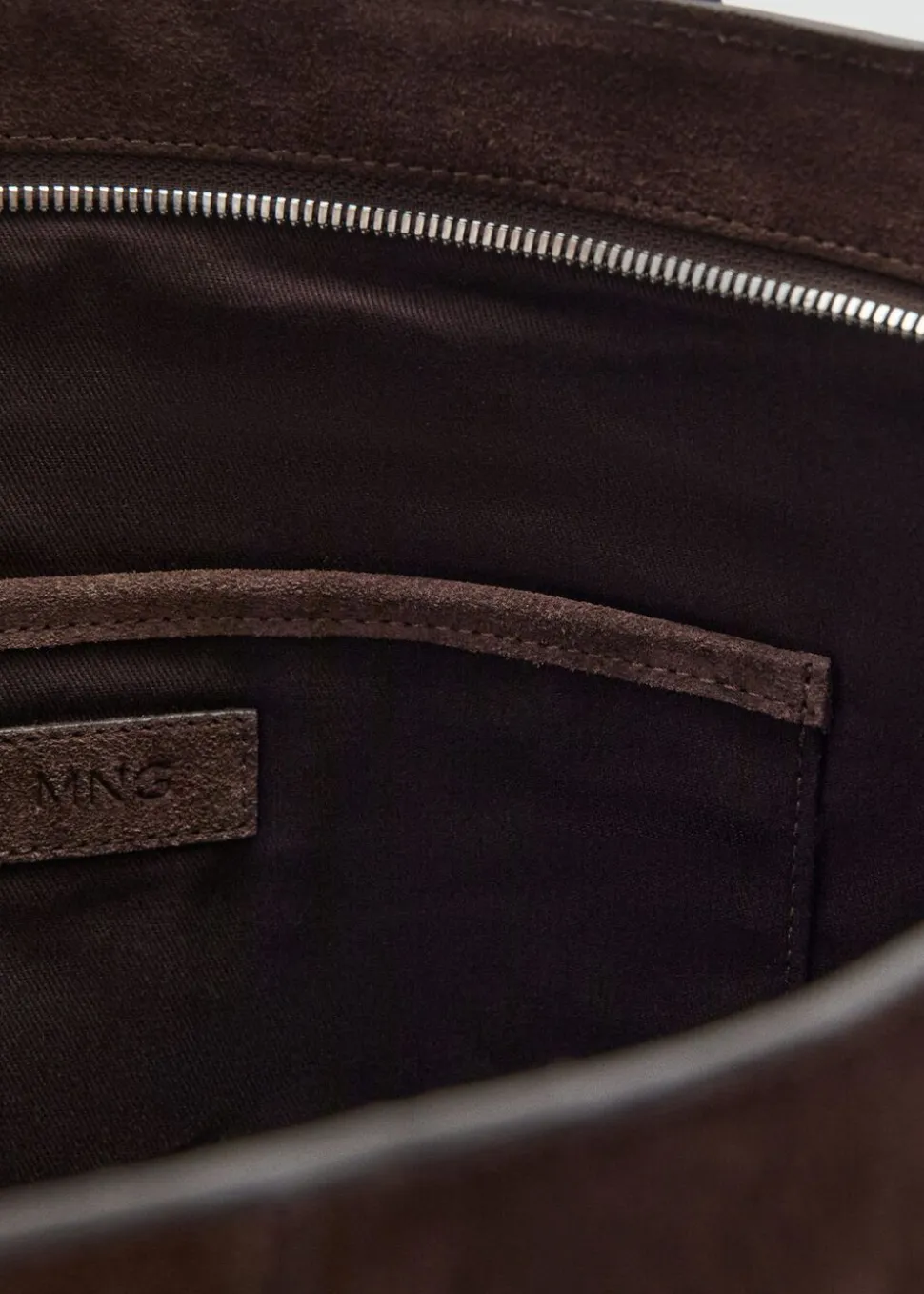 100 % bovine-læder, ruskind, køberstil, dobbelthåndtag, lynlåslukning,inderlomme, indvendigt bomuldsfor.