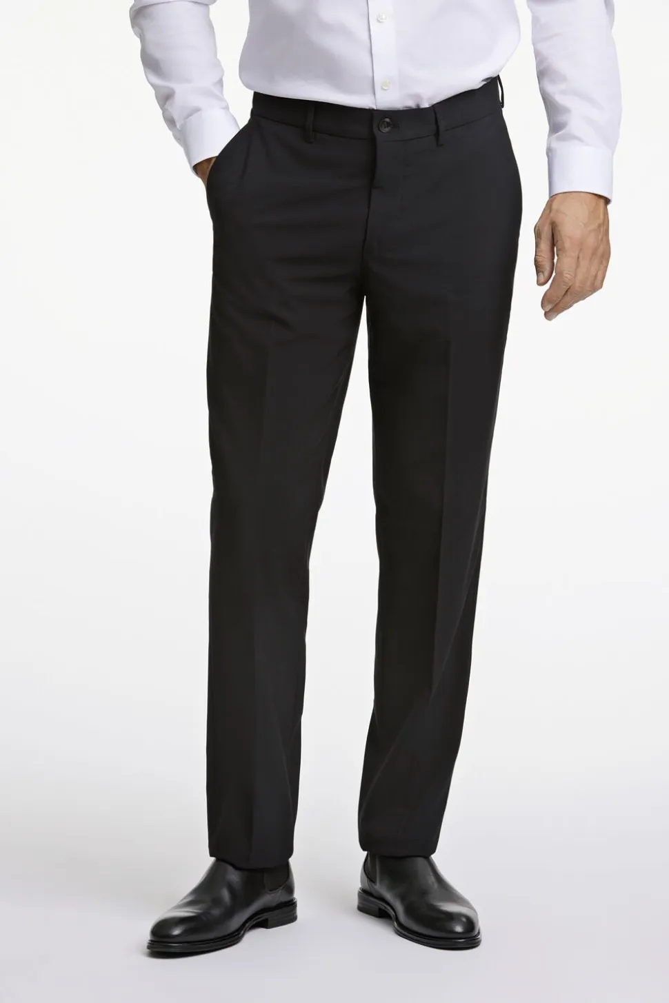 Klassiske habitbukser med pressefolder og paspolerede baglommer med knapper. Bukserne lukkes med knap og skjult lynlås.