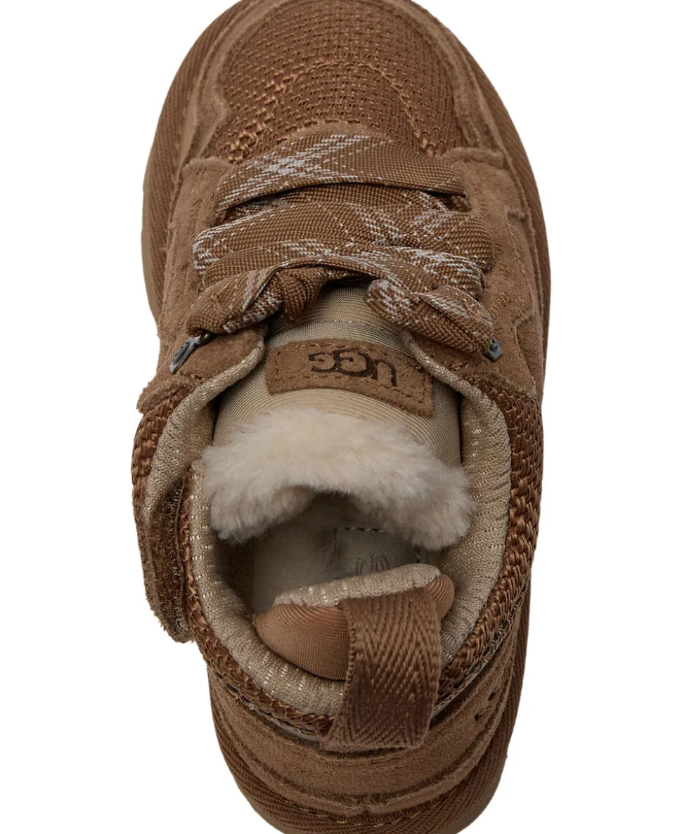 Forede sneakers fra UGG, der består af en kombination af flere forskellige kvaliteter, der tilsammen giver en rigtig flot effekt. Derudover har skoen snørebånd på fronten, en præget sål samt synings- og logodetaljer. Ekstra snørebånd medfølger.
