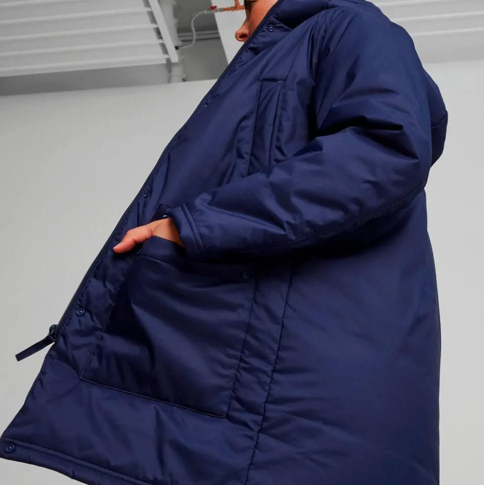 Puma TeamFINAL Vinterjakke Moderne beskyttelse til træning og daglig brug. Oplev den næste generation af PUMA Football-teknologi. TeamFINAL vinterjakken kombinerer slank design med avanceret varmeteknologi – perfekt til både træningsbanen og byen. Kernefunktioner: * warmCELL-teknologi fanger varme tæt på kroppen * Vandafvisende stof holder dig tør i enhver vejrsituation * Polstret for maksimal komfort og varme * Robust ripstop-materiale sikrer holdbarhed Design &. Detaljer: Fuld lynlås med hætte. Lange ærmer. Ikoniske PUMA Cat-logo på brystet. Konstrueret fra 100% genanvendt polyester – højtperformance møder ansvar. Ideel til atleter, der kræver både stil og funktionalitet. Oplev forskellen i kvalitet og komfort.