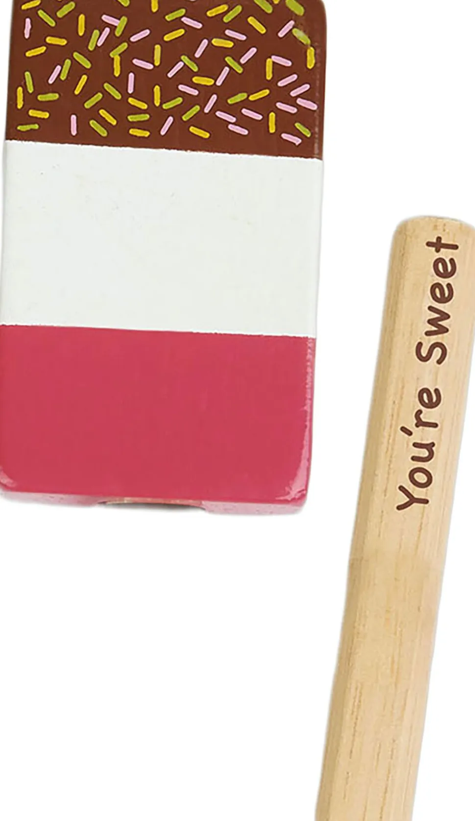 Isene kan tages op af holderen og viser en sød lille besked (engelsk) skrevet på den ellers skjulte del af pinden.