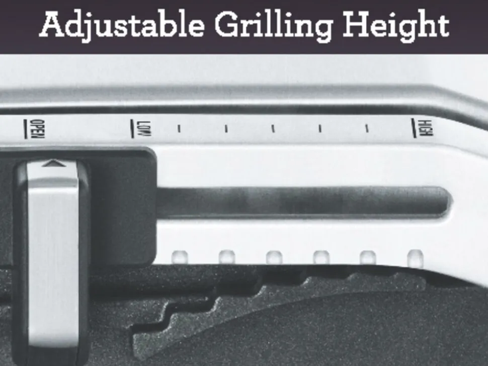 SAGE The Adjusta Grill er en alsidig bordgrill, der er designet til at gøre madlavning nemt og effektivt. Denne grill har en elegant grå/sølv farve, der passer ind i ethvert moderne køkken. Med 7 højdeindstillinger kan du tilpasse grillens position for at opnå den ønskede tilberedning af dine retter. Den non-stick belægning sikrer, at maden ikke hænger fast, hvilket gør rengøringen hurtig og enkel. Grillen har variabel temperaturkontrol, så du kan justere varmen alt efter, hvad du tilbereder. Den innovative hældningsindstilling på bundpladen gør det muligt for fedt og væske at løbe af, hvilket giver en sundere madlavning. SAGE The Adjusta Grill har en effekt på 2200 W, hvilket sikrer hurtig opvarmning og effektiv tilberedning. Denne bordgrill er ideel til både indendørs og udendørs brug, hvilket gør den til et perfekt valg til grillfester eller hverdagsmadlavning. Uanset om du griller kød, grøntsager eller panini, vil denne grill levere gode resultater. SAGE The Adjusta Grill er et must-have for enhver madelsker, der ønsker at forbedre sin madlavning med stil og funktionalitet.