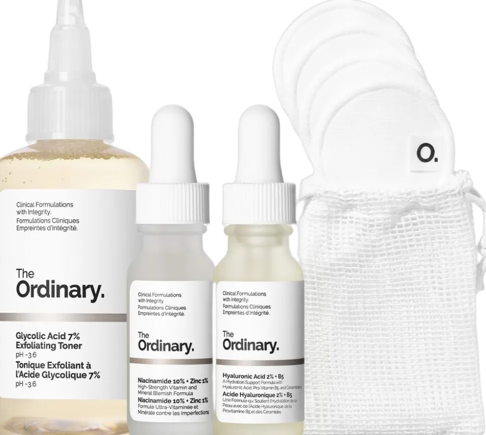 For at bruge formuleringerne sammen i en kur skal du efter rensning mætte en vatrondel med Glycolic Acid 7% Exfoliating Toner og påføre ansigt og hals. Påfør Glycolic Acid 7% Exfoliating Toner en gang dagligt, helst om aftenen. Efter rens og toning påføres et par dråber Niacinamide 10% + Zinc 1%, og når det er tørt, følger et par dråber Hyaluronic Acid 2% + B5. Glycolic Acid 7% Exfoliating Toner: