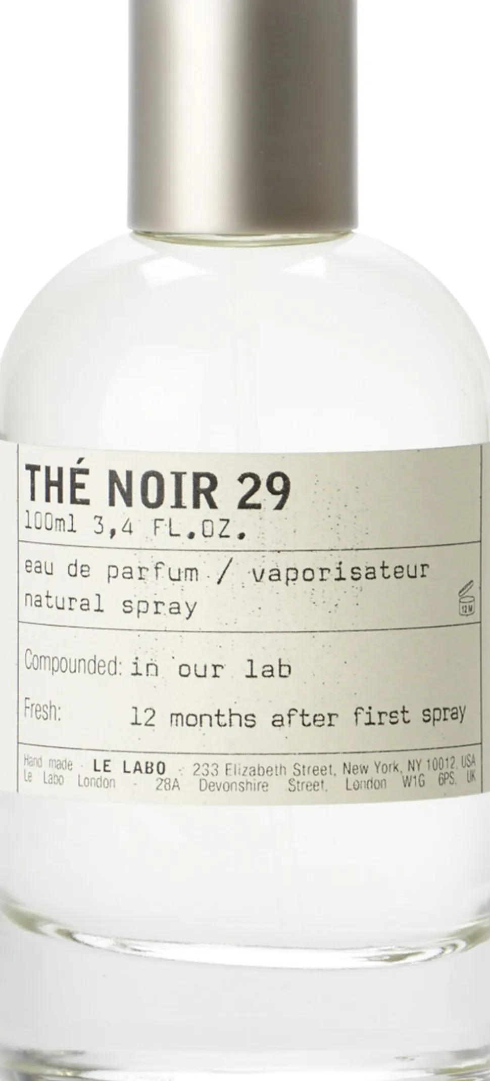 Thé Noir 29 er en hyldest til The Noble Leaf og det håndværk, der omringer det. Thé Noir 29 kombinerer dybde og friskhed samt blødhed og styrke igennem permanent oscillation imellem det lyse fra bergamot, figen og laurbærblade og det dybe fra cedertræ, vetiver og moskus. En speciel udvinding af sorte teblade afslutter kompositionen ved at give formularen en tør, blad-, hø- og tobakmæssig følelse, der forvandler dette værk til en sanselig og vanedannende parfume.