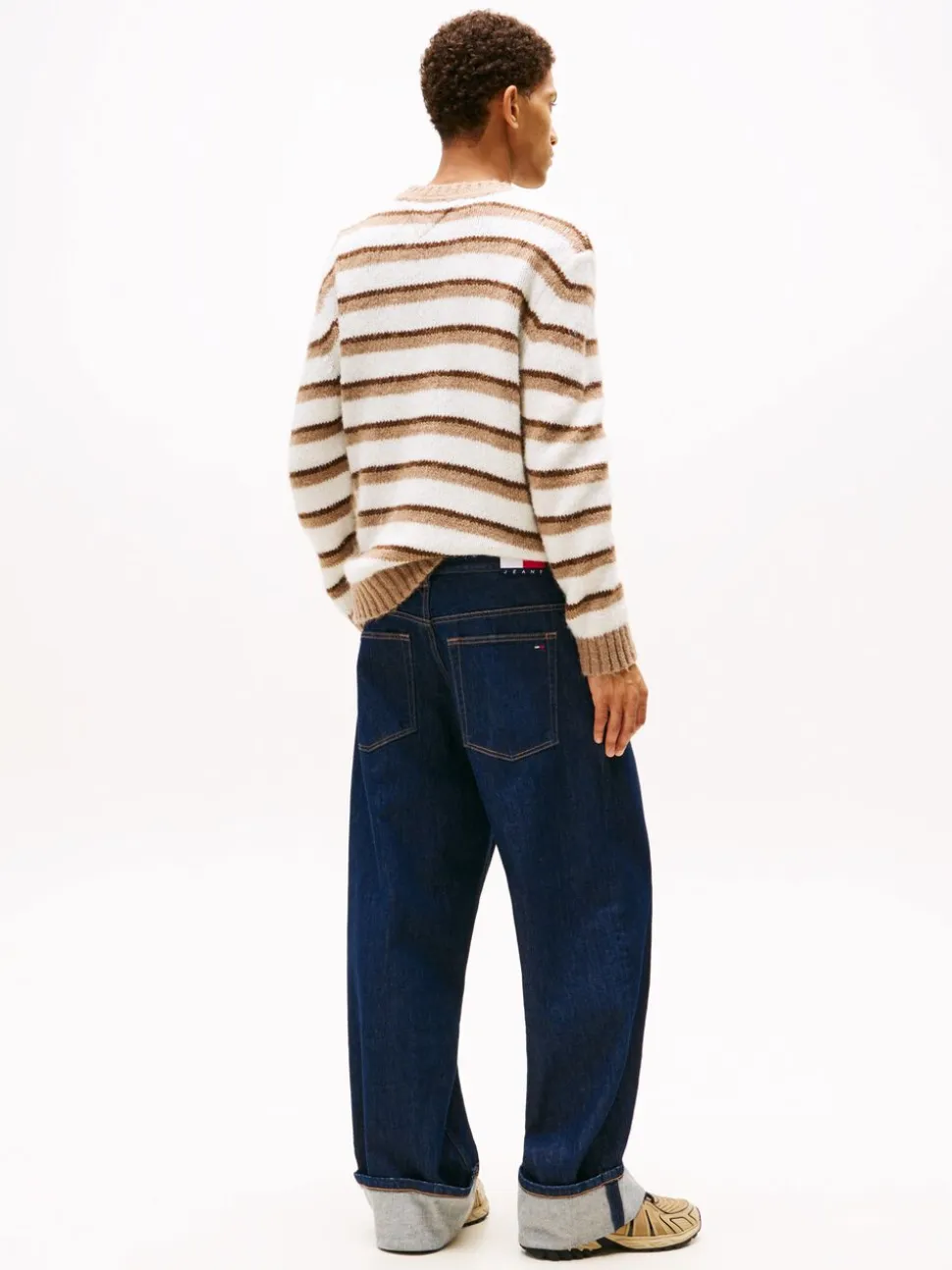 Inspired by laid-back street style, our Theo jeans are cut to a loose fit that brings a little edge to your everyday outfits. Embrace the spirit of heritage-inspired denim in these loose-fitting jeans, complete with turn-up hems for a true vintage aesthetic. Highlights include stretch cotton denim, zip with button closure, five-pocket styling, turn-up hems, Tommy Jeans branding, and Tommy flag embroidery on coin and back pockets.