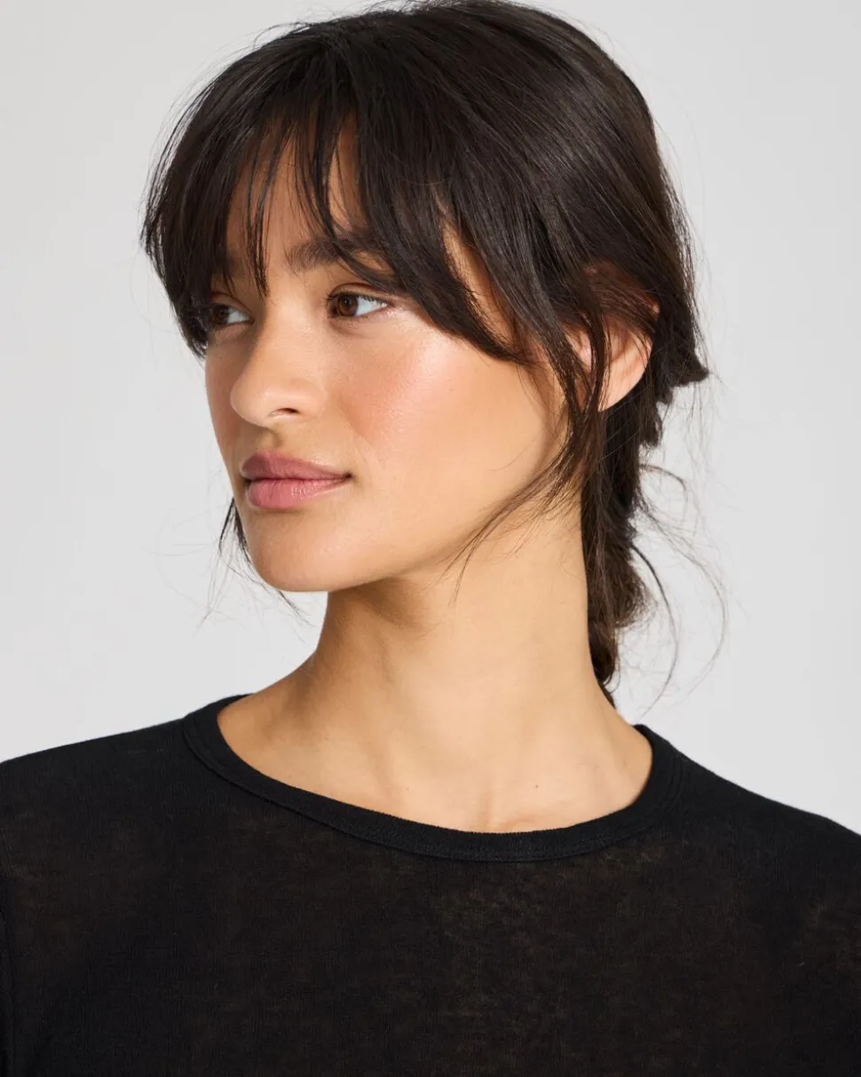 Thyra er en langærmet tee shirt, som er lavet i 28% uld, 67% viskose og 5% elastan. Tee shirten har rund halsudskæring og en tætsiddende pasform. Tee shirten er en anelse længere bagpå end foran.