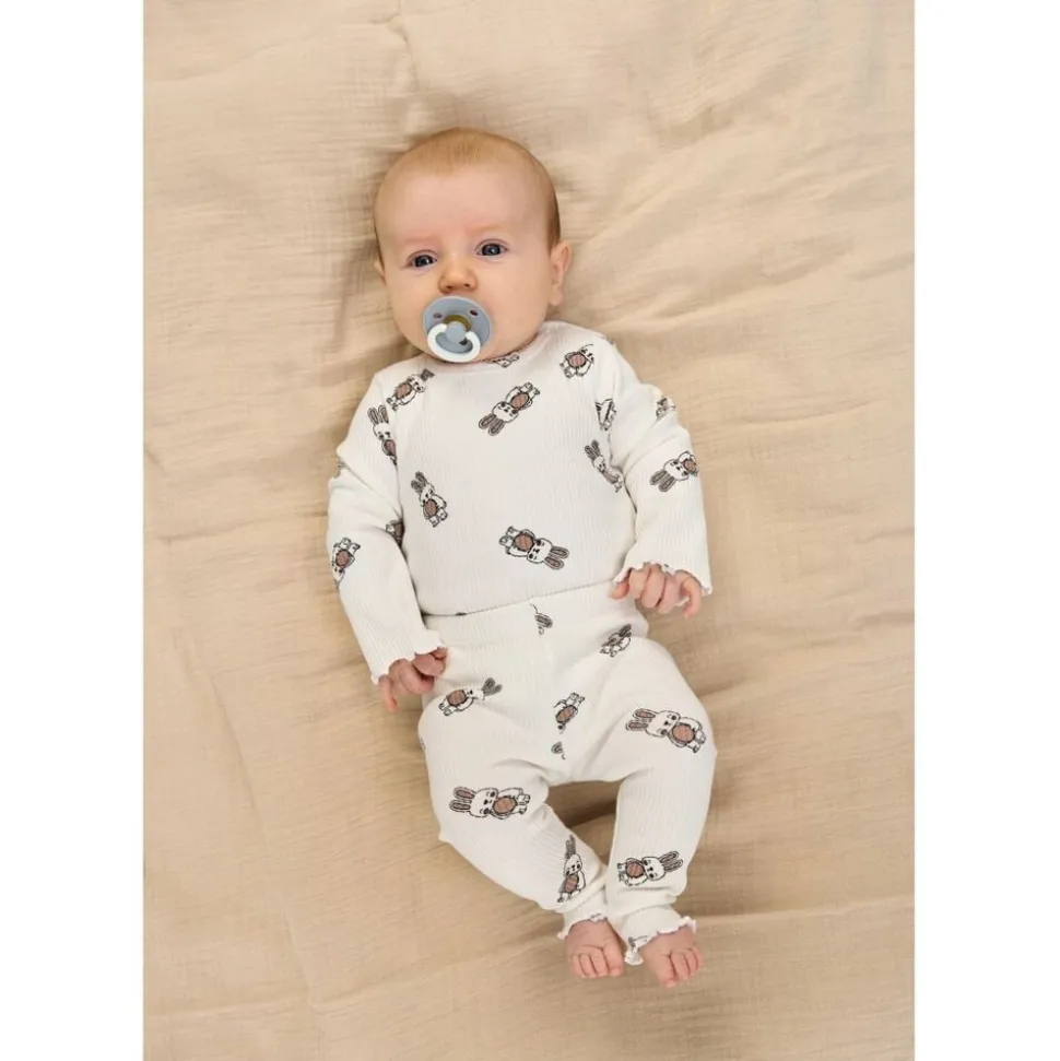 Langærmet ribstrikket bodystocking med et sødt mønster af smilende kaniner. Denne charmerende bodystocking fra THE NEW Siblings er perfekt til sæsonen og egner sig både til hverdag og særlige anledninger. Den har søde blonde-detaljer rundt ved åbningerne på bodystockingen. Sæt den sammen med de matchende TNSBPippa leggings for et sødt sæt. – Normal pasform – Langærmede – Rund halsudskæring – Ribstrik – Smilende kaniner AOP (all-over print) – Trykknaplukning ved skridtet og på én skulder – GOTS Organic certified by CU842535