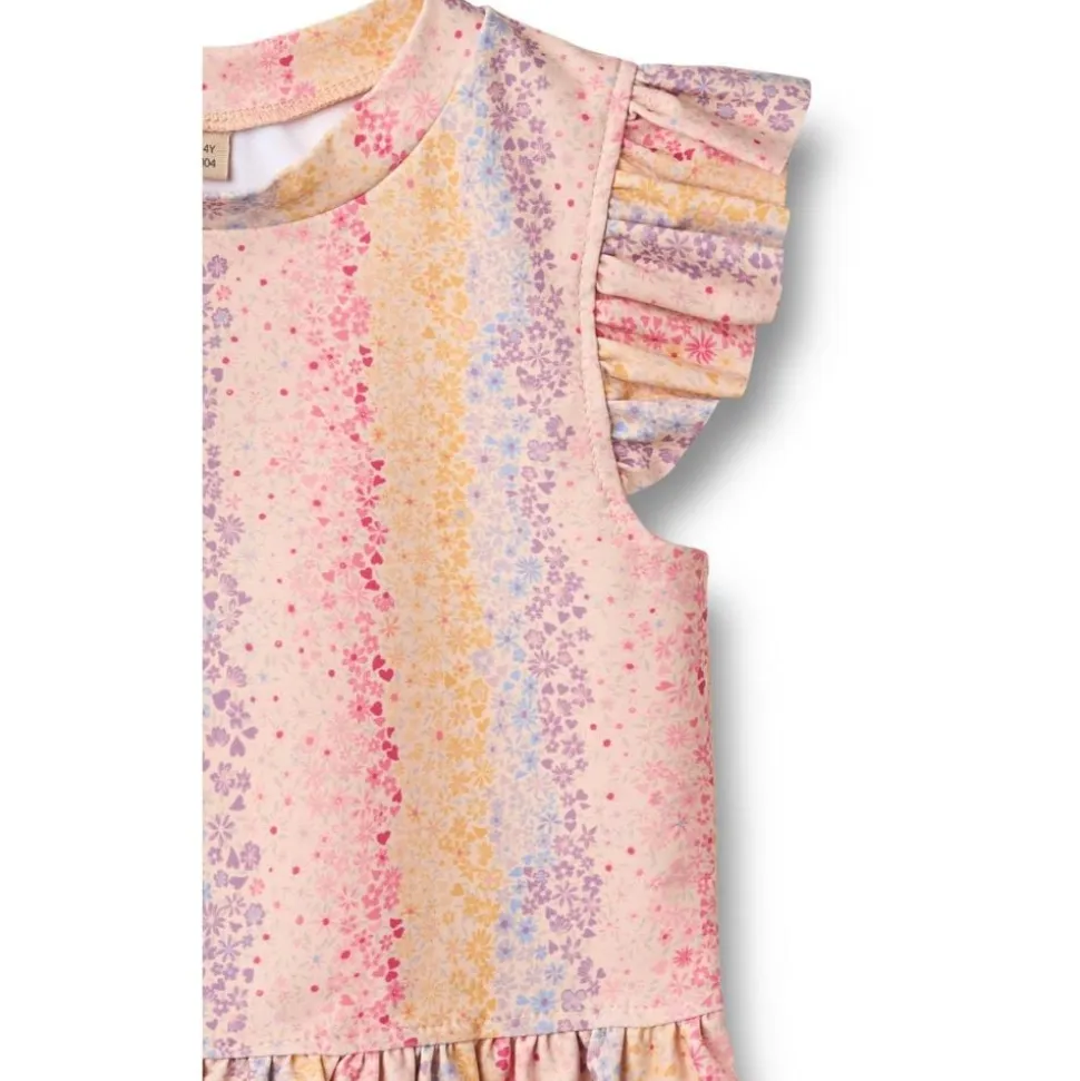 Nyt skønt todelt badesæt med flæser til børn. – Badeoverdel: Flæsekant ved ærmegab, samt i kanten rundt forneden – Ekstra længde på badeblusen – Badeunderdel: Elastik i taljen – Wheat signaturprint Wheat’s nye badesæt er perfekt til en varm dag på stranden, ved poolen, vandleg i haven eller i svømmehallen. Overdelen har fået ekstra længde, for de børn, der har brug for ekstra beskyttelse mod solen eller som blot finder designet behageligt. Al badetøj er overvejende produceret i genanvendt polyester, sørger for UV 40+/UVF 40+ beskyttelse og er Standard 100 fra OEKO-TEX® certificeret. Forlæng dit badetøjs levetid: – Ved altid at skylle dit badetøj efter badning i klor- eller saltvand. – Ved at følge vaskeanvisningerne — – Standard 100 fra OEKO-TEX® – 83% Genanvendt polyester, 17% Elastan – Produktet er GRS certificeretStilig todelt badetøysett for barn, designet for komfort og lek. – Topp: Volanger på skuldrene og nederst – Forlenget topp for ekstra dekning – Underdel: Enkel passform for optimal komfort – Wheat sitt signaturprint Wheat sitt badetøy gir god passform og bevegelsesfrihet i vannet. Perfekt for en dag på stranden eller i svømmehallen. Alt vårt badetøy er hovedsakelig laget av resirkulert polyester og er behagelig for barnet å bevege seg i. Stilen har UV 40+/UPF 40+ beskyttelse og er OEKO-TEX®-sertifisert. — – Standard 100 by OEKO-TEX® – 83 % Resirkulert polyester, 17 % Elastan – GRS-sertifisert