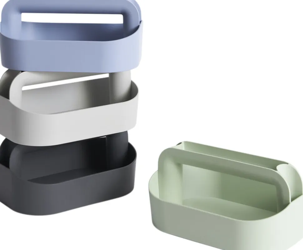 HAYs praktiske og praktiske værktøjskasse er designet af Shane Schneck med ekstra rum i siderne og øverst på håndtaget for at optimere opbevaringspladsen. Den er fremstillet i let, men robust Recycled ABS og Design er nem at flytte rundt i huset eller haven. Fås i flere alsidige farver, der er nemme at integrere med omgivelserne.