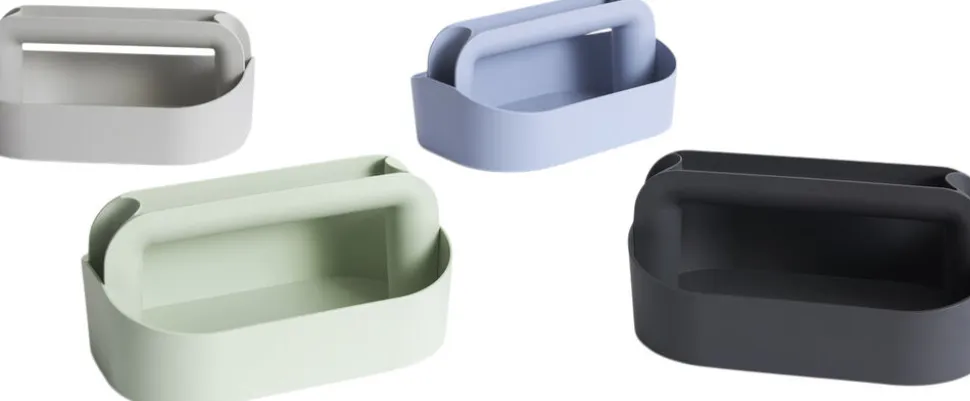 HAYs praktiske og praktiske værktøjskasse er designet af Shane Schneck med ekstra rum i siderne og øverst på håndtaget for at optimere opbevaringspladsen. Den er fremstillet i let, men robust Recycled ABS og Design er nem at flytte rundt i huset eller haven. Fås i flere alsidige farver, der er nemme at integrere med omgivelserne.