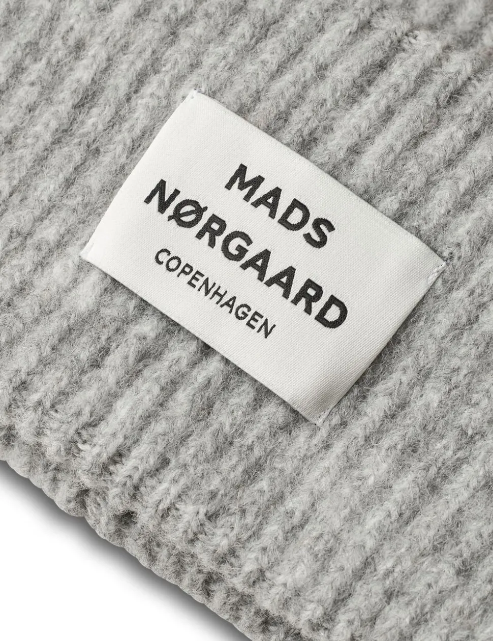 Blød, ribstrikket hue med bredt dobbelt-ombuk og påsyet logolabel.