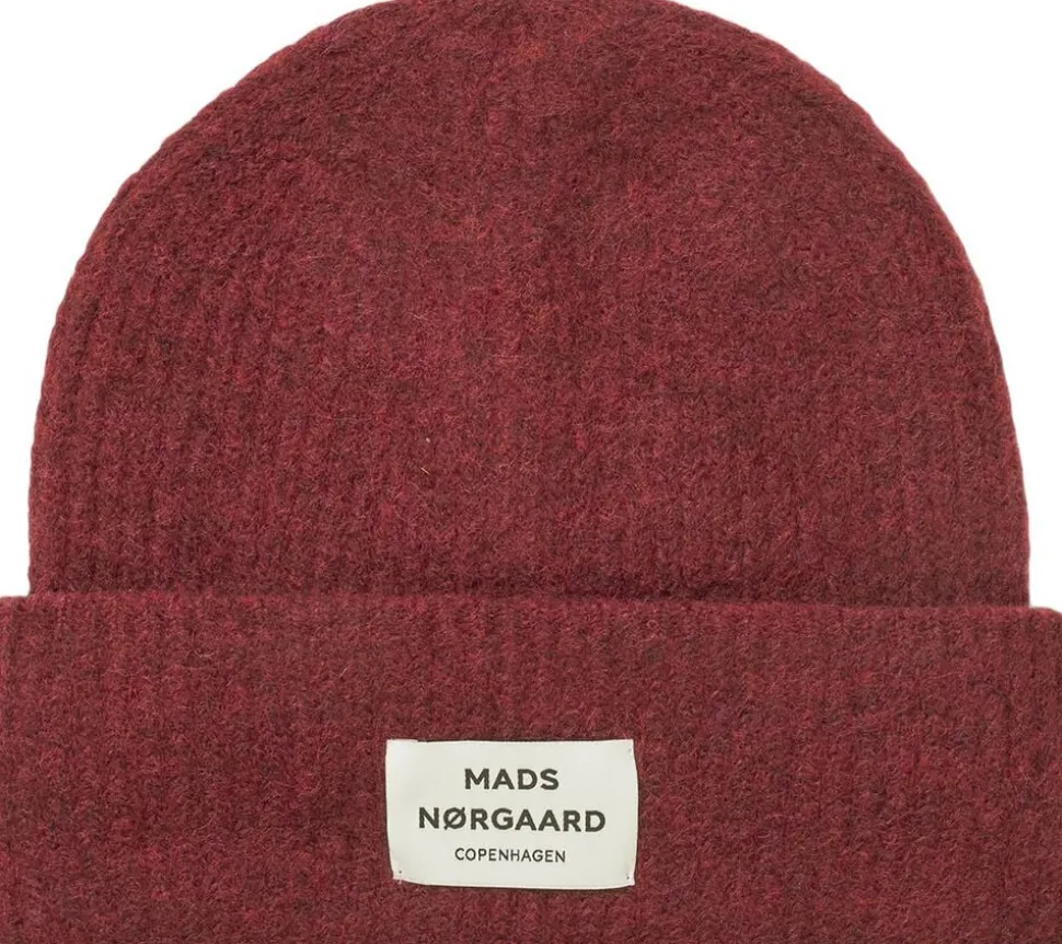 Blød, ribstrikket hue med bredt dobbelt-ombuk og påsyet logolabel.
