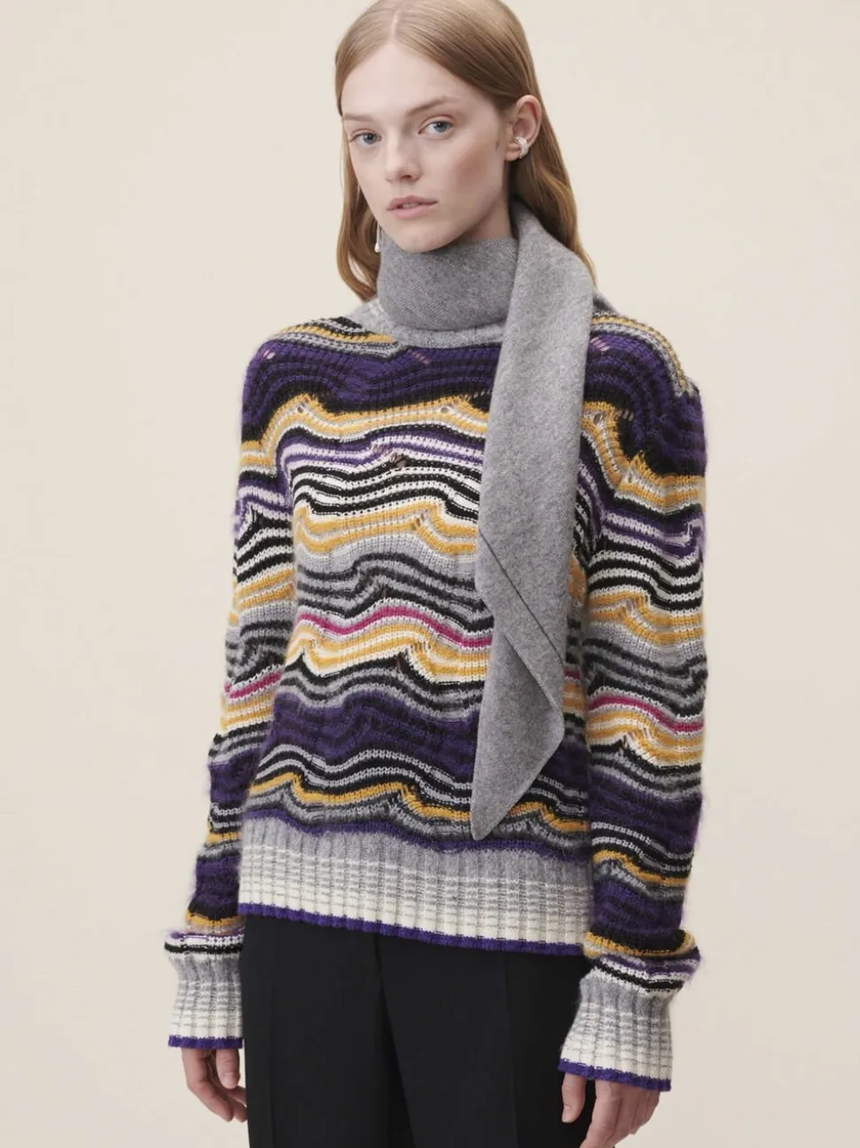 En smuk, monokrom udgave af vores luksuriøse og bløde kashmirtrekanter med et diskret LALA BERLIN-logo på klassikernes farvekombinationer.