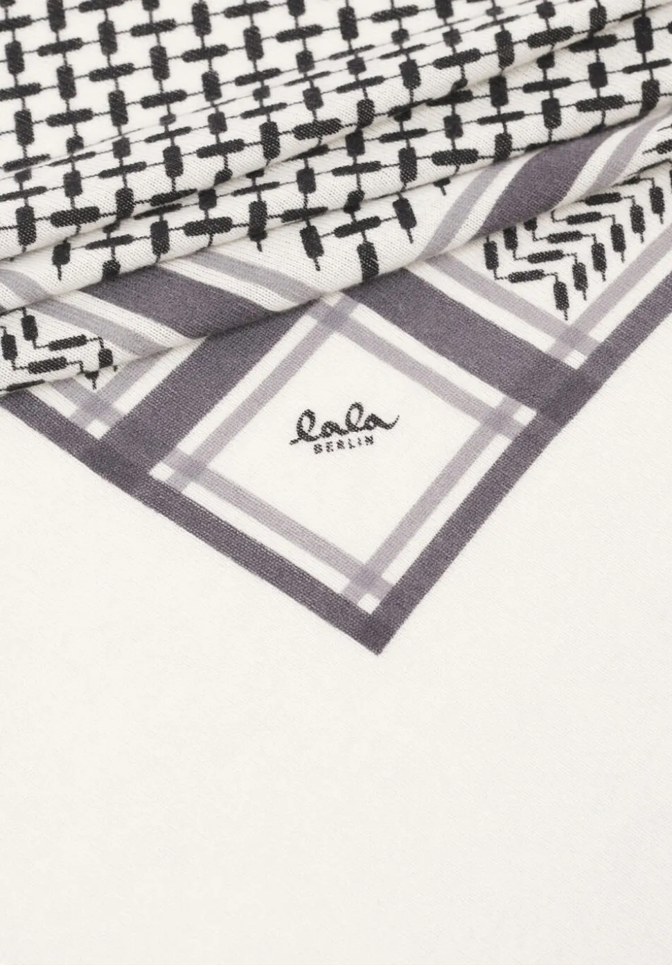 Et stort, luksuriøst blødt, trekantet cashmere tørklæde med et klassisk sort Kufiya-print.
