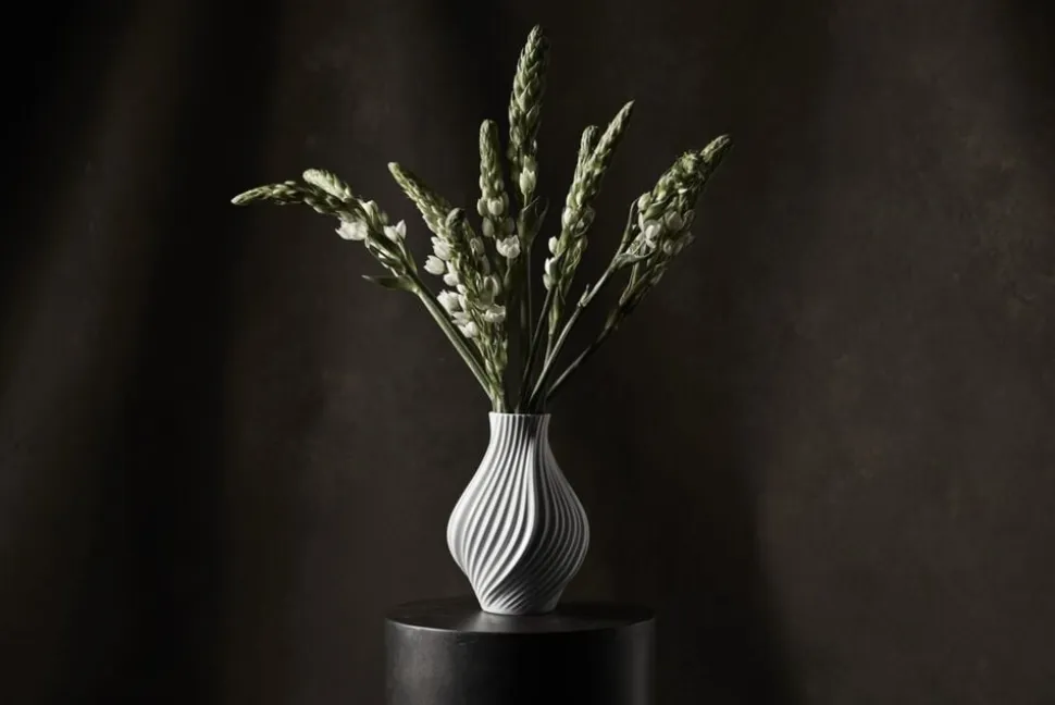 Et elegant møde mellem natur og kultur. Med Lyngby-seriens unikke Twist-vaser får du enkel, stilren og skulpturel porcelænsmagi, som vi kender det fra Lyngby Porcelæn, hvor arkivdesign, klassiske former og rendyrket æstetik udfoldes med i et formfuldendt designtwist med linjer, der inspirerer. Lyngby-designet er i dag veletableret som en sand klassiker i Lyngby Porcelæns sortiment alle dele med de inspirerende linjer, der karakteriserer Lyngby Porcelæns minimalistiske og stilfulde design og giver Lyngby-serien sit helt særlige udtryk. Med Twist tager Lyngby Porcelæn et par stilige sving ad helt nye designveje og giver dig en vase inspireret af de naturlige formationer, du finder i naturen barken på et træ, spiralformede galakser, svungne blomsterstængler og fortidsskabte formationer i landskabet. Ud over denne vase på 18 cm i højden findes Twist-vaserne også i størrelser på 25 cm og 31 cm, der matcher resten af Lyngby-serien. Som samlet serie komplimenterer de naturligvis hinanden perfekt, men de kan sagtens stå alene som skulpturelle designelementer forskellige steder i indretningen. Uanset størrelse og placering vil de alle være et lille, mellem eller stort statement i hjemmet, og med årstidens grene eller buketter kommer deres dynamiske form måske endnu mere til sin ret. Det giver en skøn tilføjelse af en naturlig ro og harmoni, men uden at det på nogen måde overtager vasernes karakteristiske formsprog. De kommer selvfølgelig alle sammen med det ikoniske logo i bunden, der sikrer dig, at du har fat i det ægte vasedesign det fra Lyngby Porcelæn.
