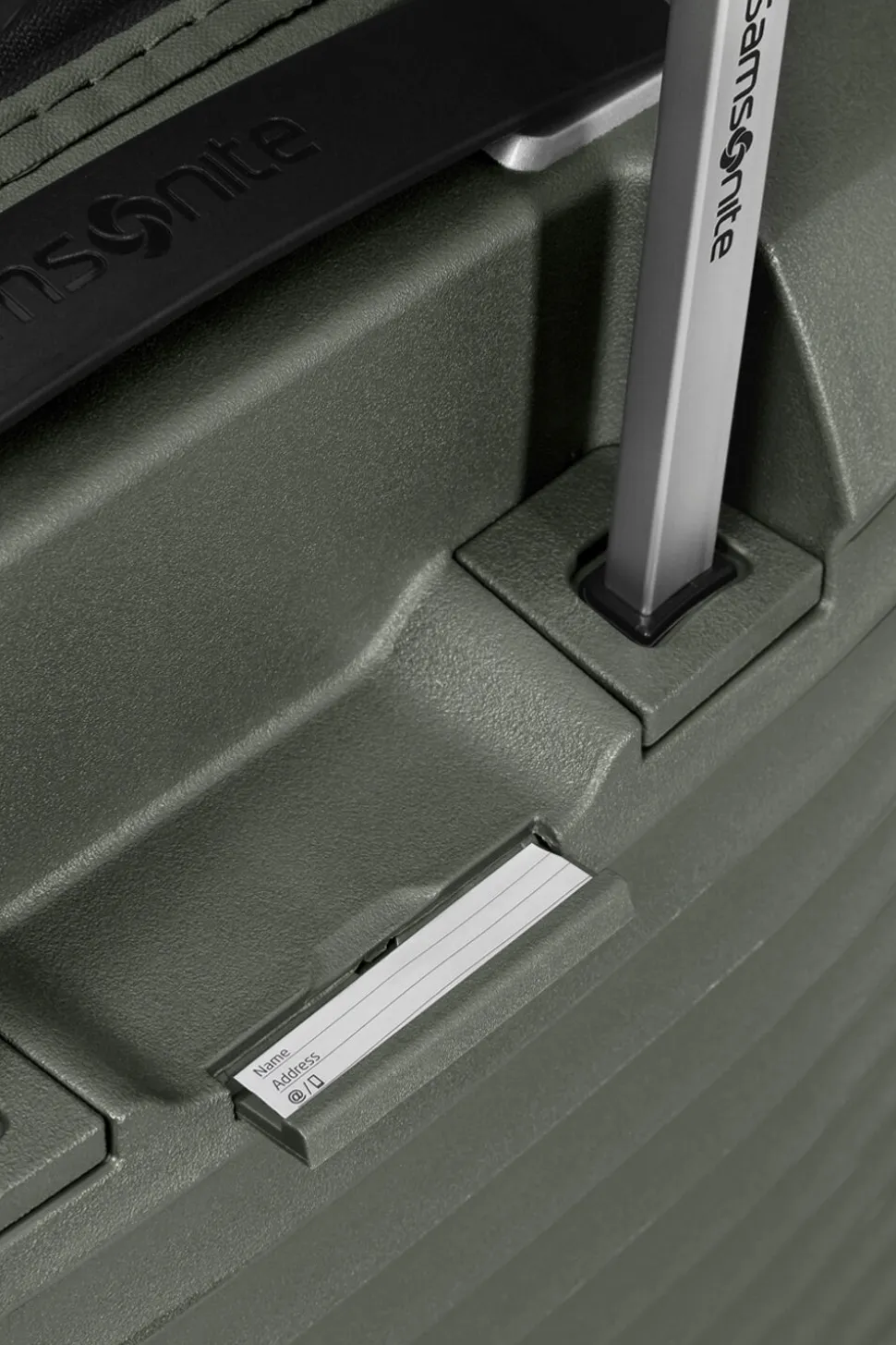 Kabinekuffert med mulighed for udvidelse, polypropylen,4 hjul,TSA lås , indvendig stofforring lavet af genbrugte plastflasker, dobbelt trollystativ, navneskilt, vægt 2,3 kg,rumindhold 39/45 l, 5 års garanti,55x40x20/23 cm.