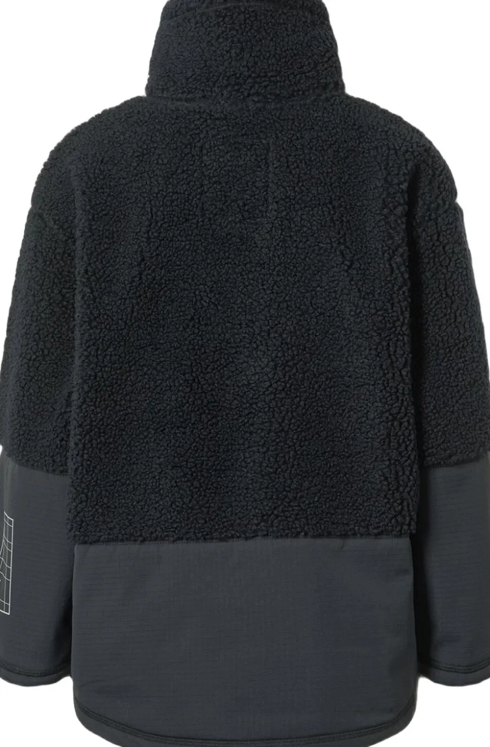 Denne sorte fleecejakke fra Molo er lavet i genanvendt polyester og har vind- og vandafvisende, slidstærke nylonpaneler på ærmer, ryg og frontlommer. Jakken har en høj krave og lynlåslukning på fronten.