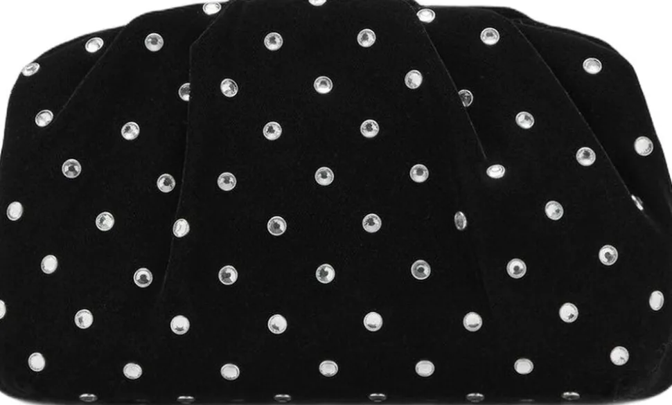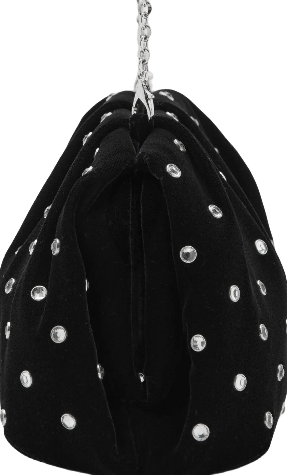 Fløjlsstof, Strass-Design, Clutch-stil, Aftageligt kædehåndtag, Indvendigt for. 10.0. 28.0. 14,0