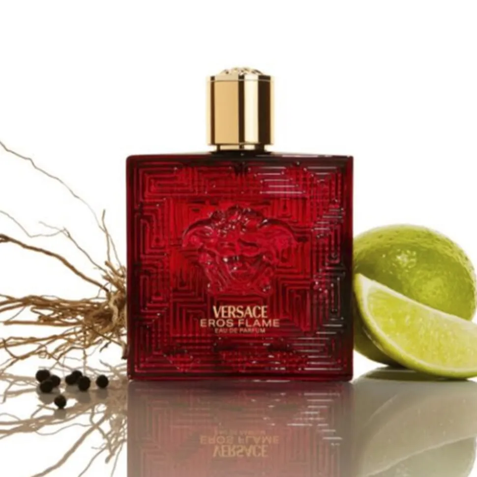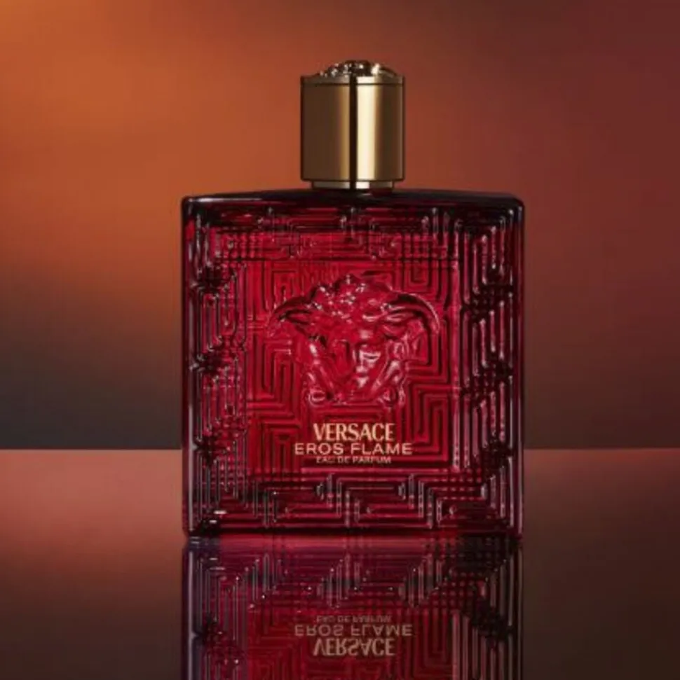 Versace Eros Flame, den nye herreduft, rammer dig lige i hjertet. Den bærer en vigtig besked til nye generationer om kærlighedens værdighed og diversitetens magt. Versace Eros Flame er en parfume til en stærk, passioneret og selvsikker mand, der er i dyb kontakt med sine følelser. På en og samme tid opfatter han nuværende følelser og nyder den evige duft af ægte kærlighed, der fører os fra det virkelige liv til et mytisk univers, hjemmet for helte, der transformerer deres svagheder til styrker. Meget karakteristisk med en træagtig aroma baseret på de unikke duftegenskaber fra dyrebare naturlige ingredienser og den seneste generation af molekyler. En moderne, frisk, skarp, intens, dybtgående og sensuel duft. Versace Eros Flame er ildrød, intens og maskulin for entydigt at genkalde kærlighedens passion. Med Medusas hoved midt på flakonen og det græske nøglemotiv placeres duften i hjertet af Versaces univers og er de mytiske vogtere af det dyrebare indhold. Medusas hoved, det tilbagevendende ikoniske symbol for Versace, er et dyrebart juvellignende gyldent segl på hætten, der repræsenterer en kraft, der overgår tidens rammer.