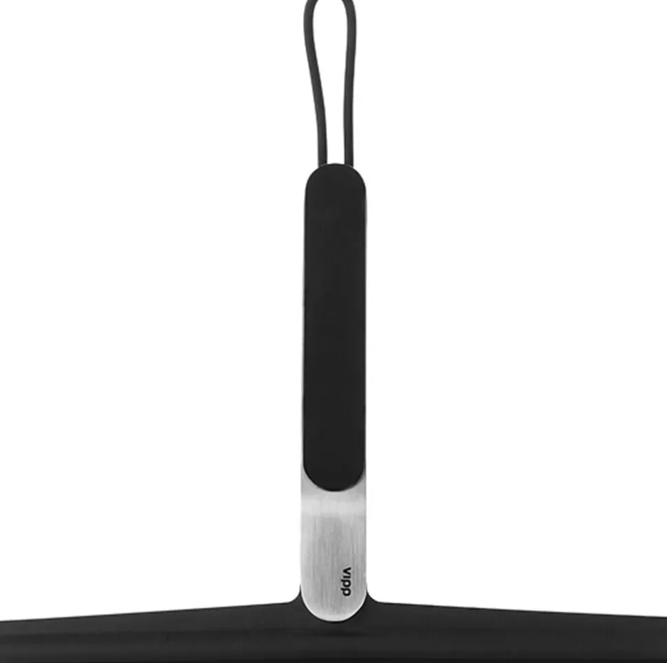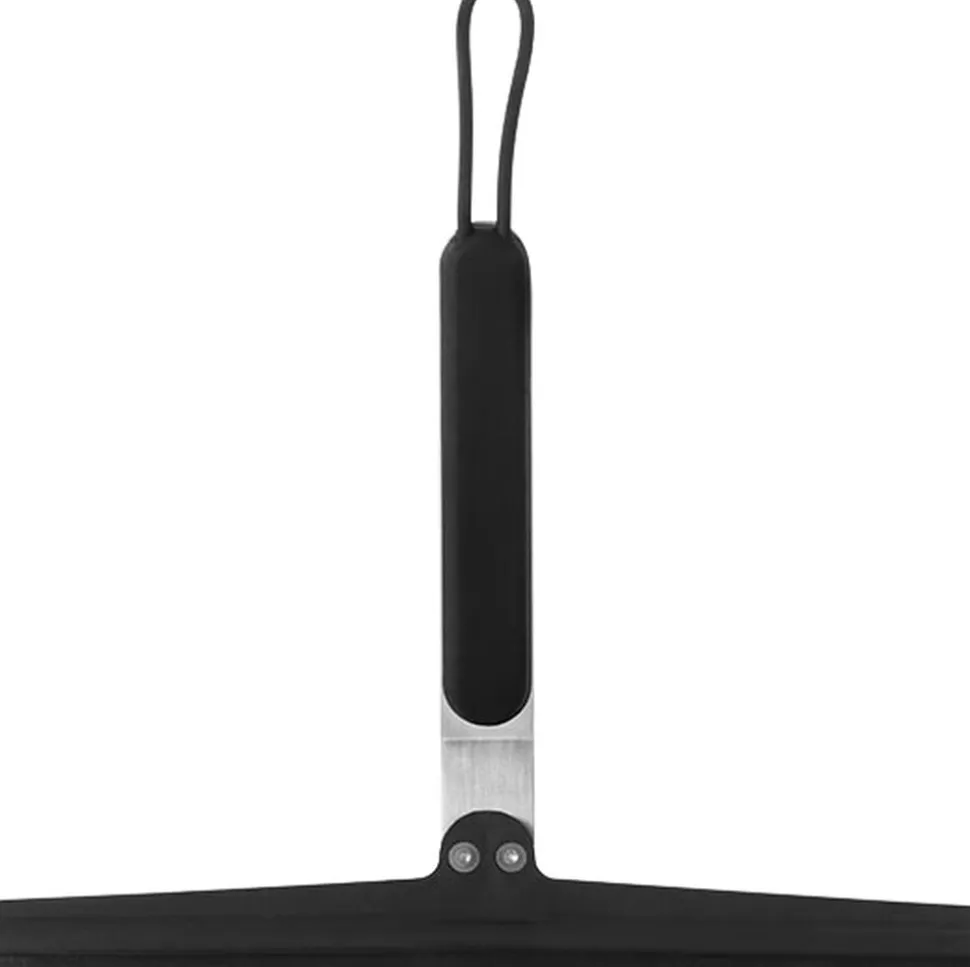 Bruseskraberen har et udskifteligt skraberblad i blødt gummi, der nemt fjerner vand fra glatte overflader. Grebet i gummibelagt, massivt stål har en god tyngde mens de bløde kanter skåner overflader. Gummistroppen gør det nemt at hænge bruseskraberen op efter brug på. Designsproget i Vipp bruseskraberen matcher den øvrige badeværelseskollektion fra Vipp.