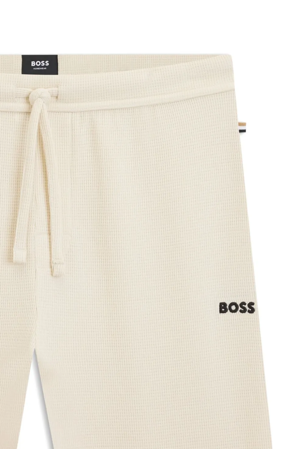 Opgrader dine overnatningsmuligheder med den bløde bomuldsblanding fra disse pajama-underdele fra BOSS herretøj i lige pasform. Broderet logo. Justerbar løbesnor