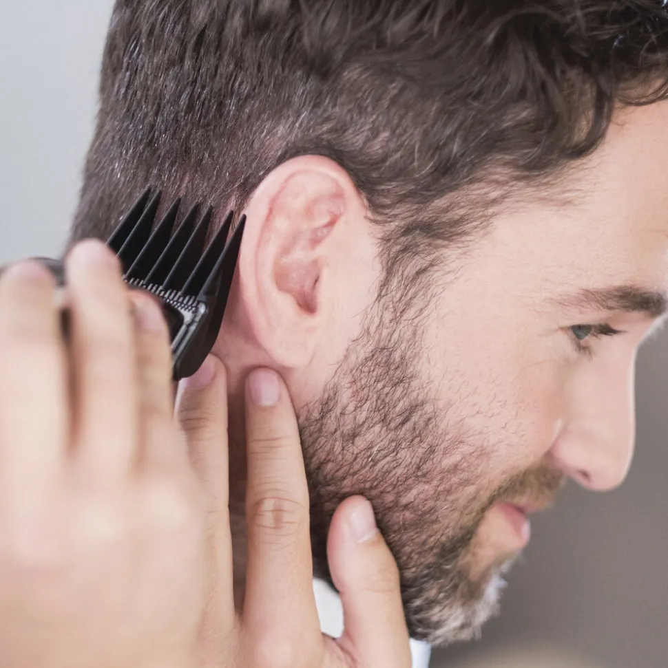 Hårklipperen har en ergonomisk form, der gør det nemt og behageligt for dig at klippe fra alle vinkler . Udover den medfølgende, praktiske opbevaringskuffert får du også både rensebørste, saks, kam, samt klips til håret i dette hårklippersæt.