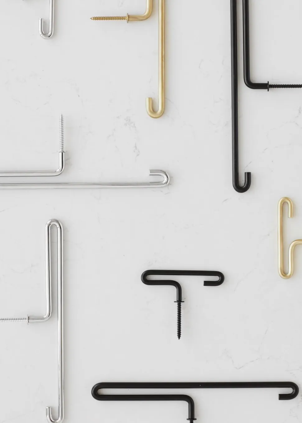 WALL HOOK by MOEBE er designet som et enkelt, kontinuerligt element. Knagen har to punkter, hvorpå man kan hænge sin jakke, nøgler, hat osv. Enten på toppen af den bøjet wire eller forneden på selve krogen. For at sikre en så simpel som muligt form, har vi valgt at spejlvende den normale knage, ved at lade selve krogen vende ind ad. På den måde får WALL HOOK by MOEBE en lukket og harmonisk form.
