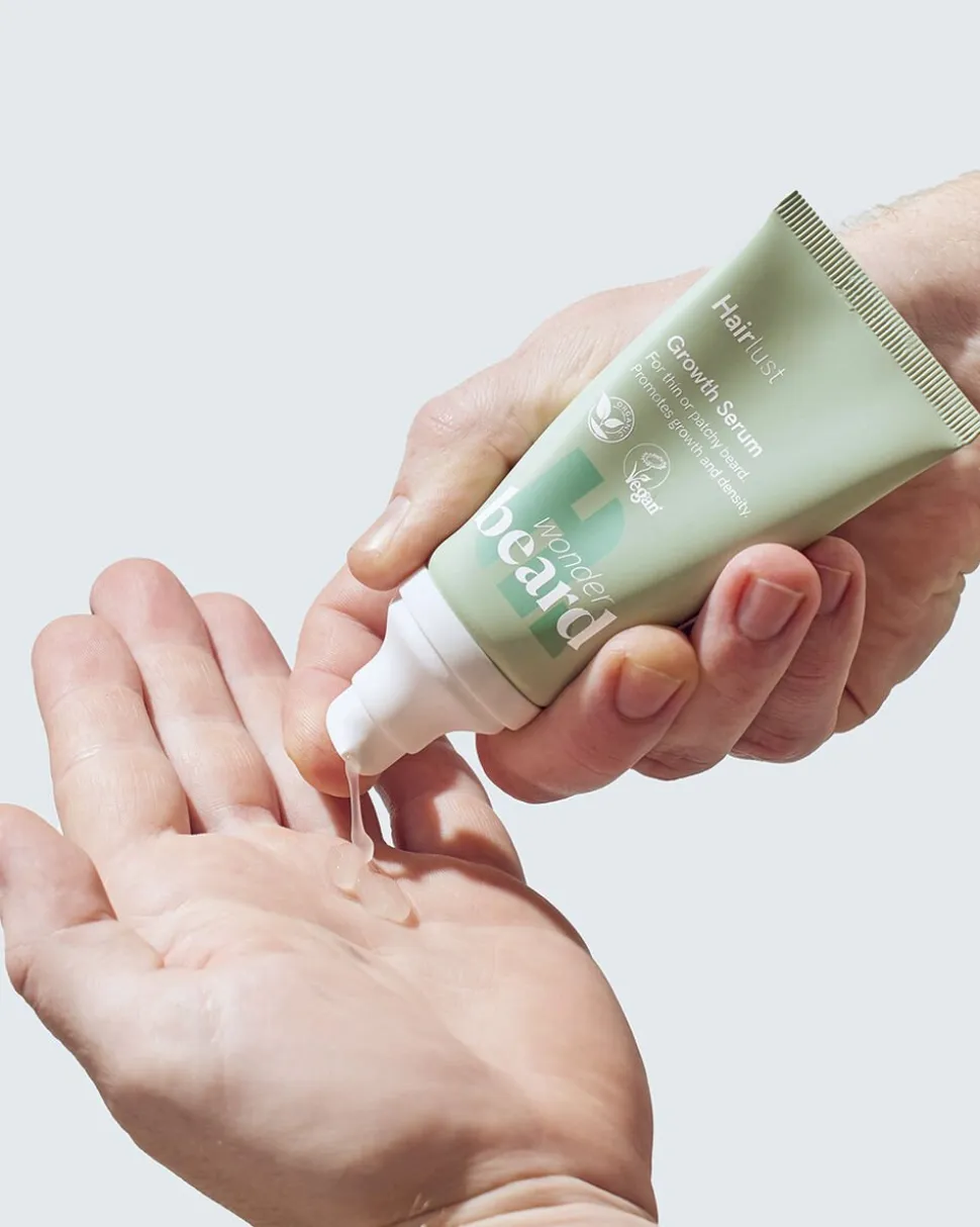 Få styr på skægget med Wonder Beard Growth Serum! Et skæg ser godt ud, men det kræver en vis finesse, og skal passes og plejes, hvis det skal se flot ud. Wonder Beard Growth Serum har to tilgange til at flot og tæt skæg. Først og fremmest indeholder dette skægserum, CAPIXYL Peptid Complex, som virker fremmende på manglende hårvækst. Hernæst kombineres fugtgivende og plejende ingredienser fra økologisk aloe vera og økologisk havreekstrakt, som hjælper med at tæmme og blødgøre skægget, samtidig med at fugte den følsomme hud under skægget.