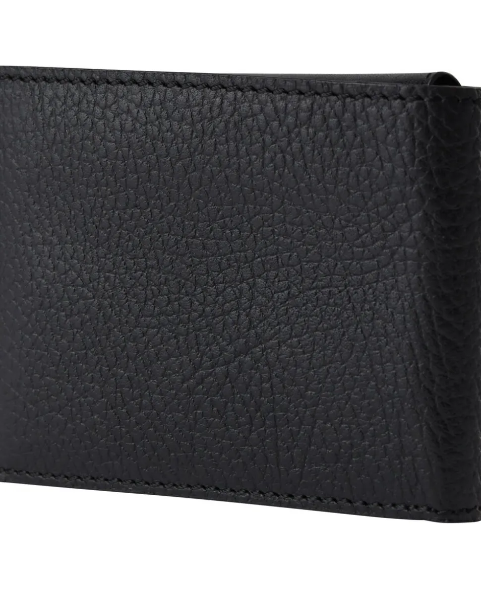 Folded wallet in soft grainy leather with smooth leather trimmings. Large open note compartment at top. Inside features three open pockets and ten card slots. RFID anti-skimming lining. Embossed Tiger of Sweden logo at the front. Size: 8 x 11 cm
