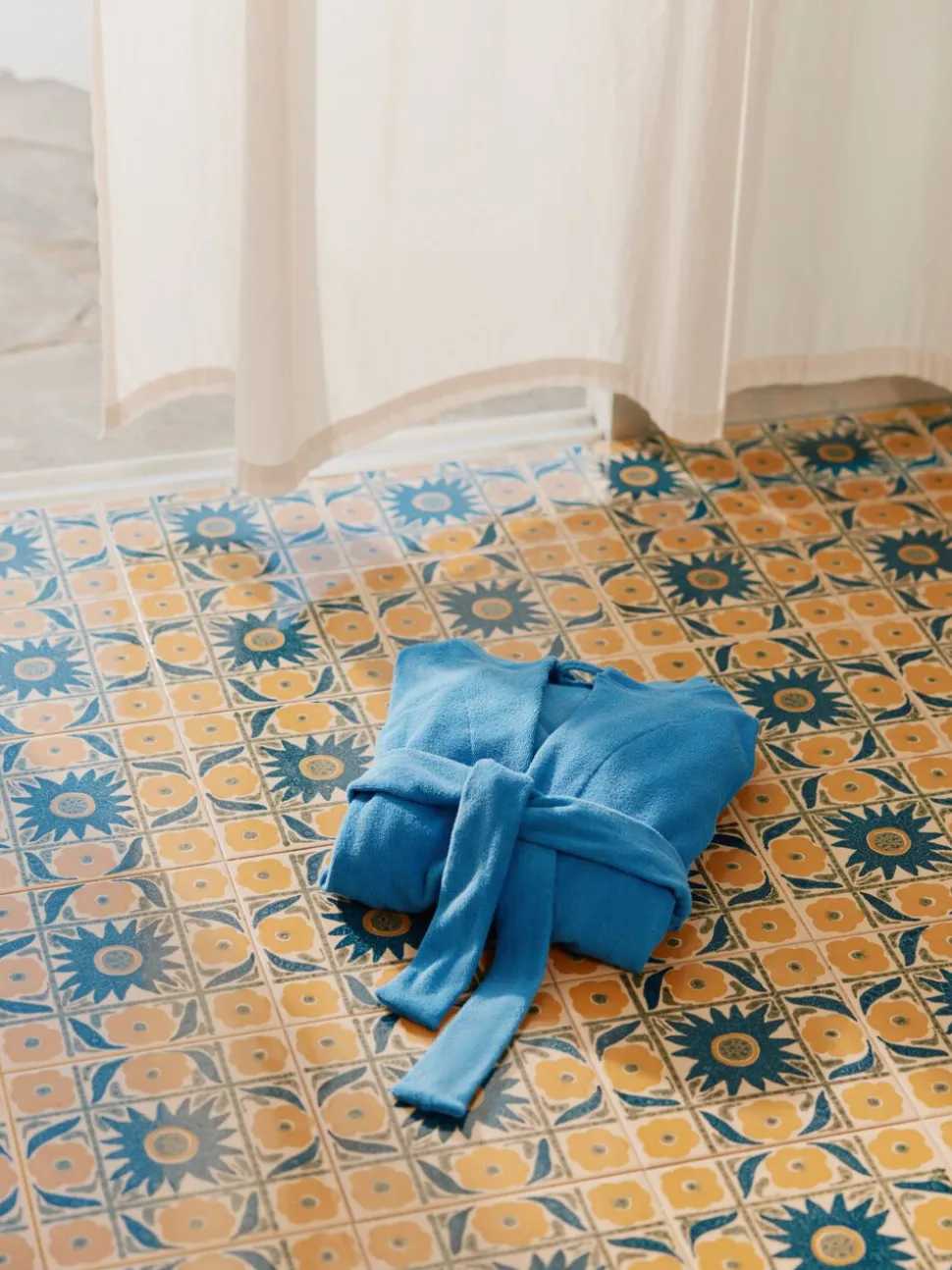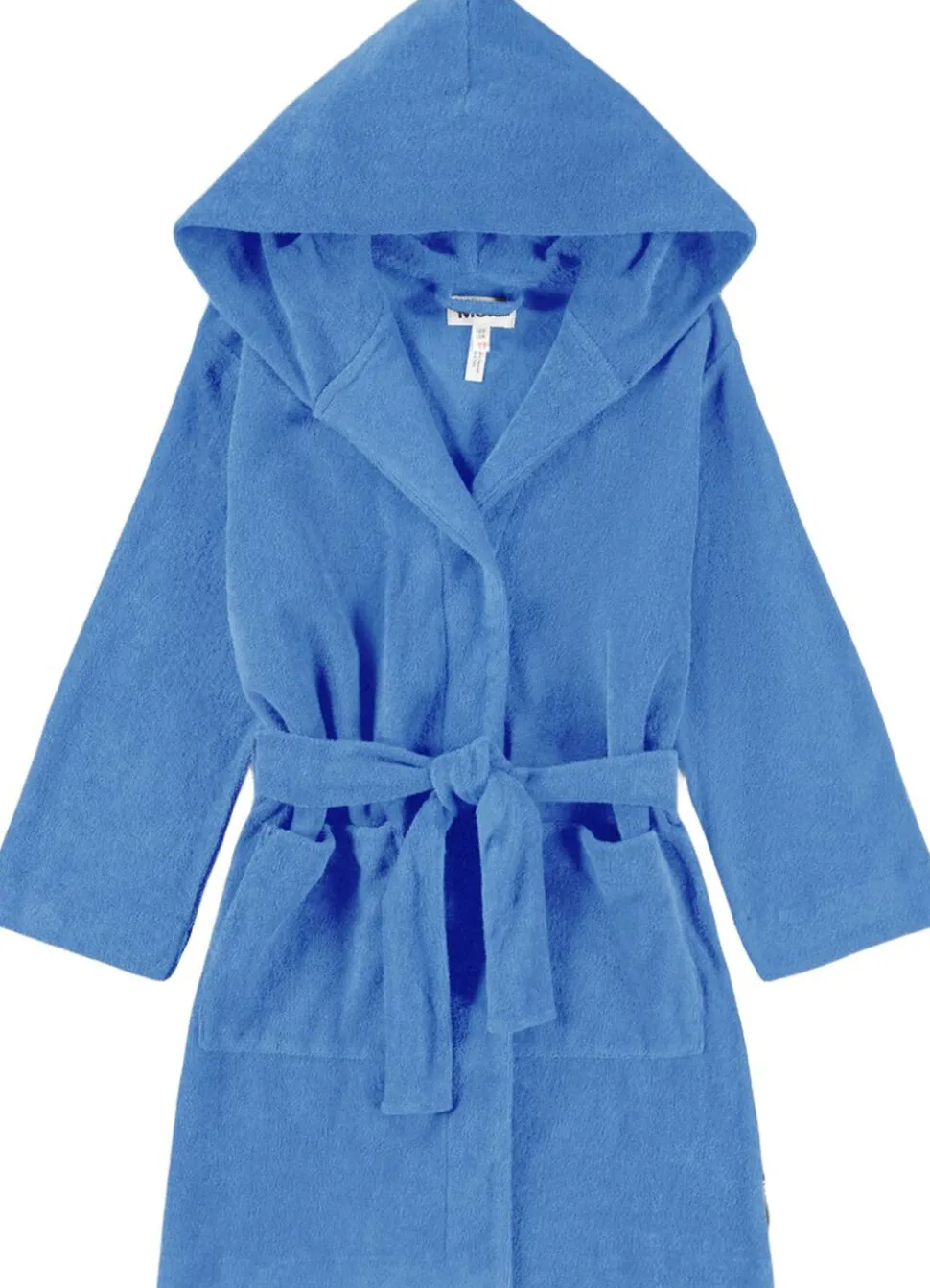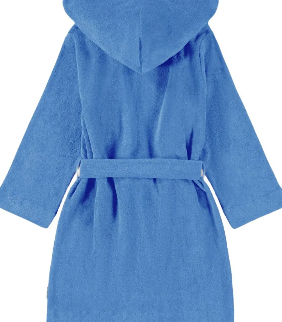 Superblød badekåbe til børn, fremstillet af lækker frotté, der giver en behagelig komfort. Den har praktiske lommer og et bindebånd i taljen, så den sidder perfekt. Den indbyggede hætte sikrer ekstra varme og hygge, hvilket gør den perfekt til både morgenrutiner og afslapning efter badet. Giv dit barn en oplevelse af luksus med denne stilfulde badekåbe.