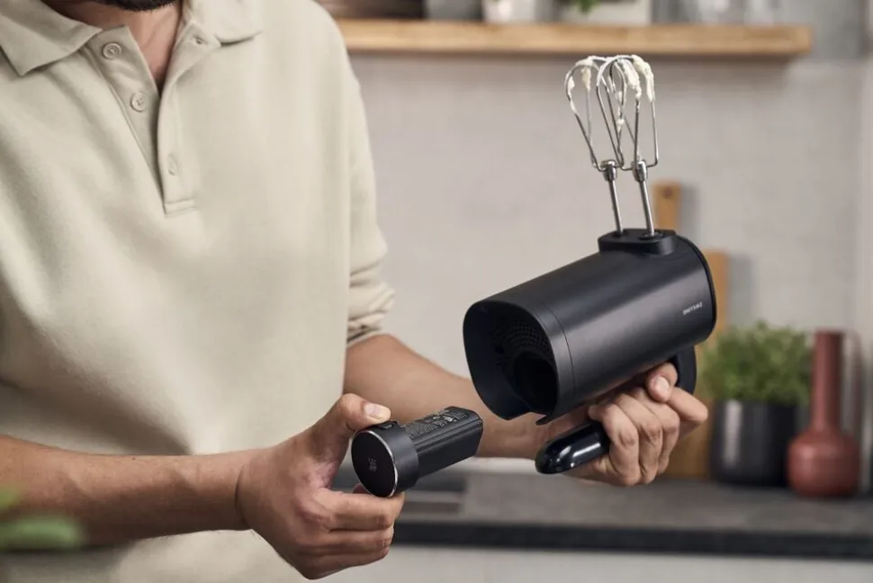 Her får du det hele på én gang: Masser af power, alsidighed og tidløst design. Bare ingen ledninger. Det batteridrevne ZWILLING XTEND Cordless håndmikser for fuld frihed i køkkenet. Og samtidig får du lige så meget power som ved en blender med ledning. Med æltekrog og piskeris samt tre hastighedstrin for maksimal alsidighed. Kagedej eller brøddej? Intet problem. Piskede æggehvider? Bliver ekstra stive. Flødeskum? Er pisket i en håndevending. Med udtageligt batteri for fuld fleksibilitet i køkkenet. Også velegnet til alle andre ZWILLING XTEND Cordless-apparater. Med flere batterier kan du nemt forlænge driftstiden. Batteriet medfølger ikke, men kan købes som sæt eller enkeltvist. ?*Målt med fuldt opladet batteri. Den faktiske driftstid kan variere afhængigt af opskrift, tilberedningsmængde, anvendt tilbehør og batteriets tilstand.