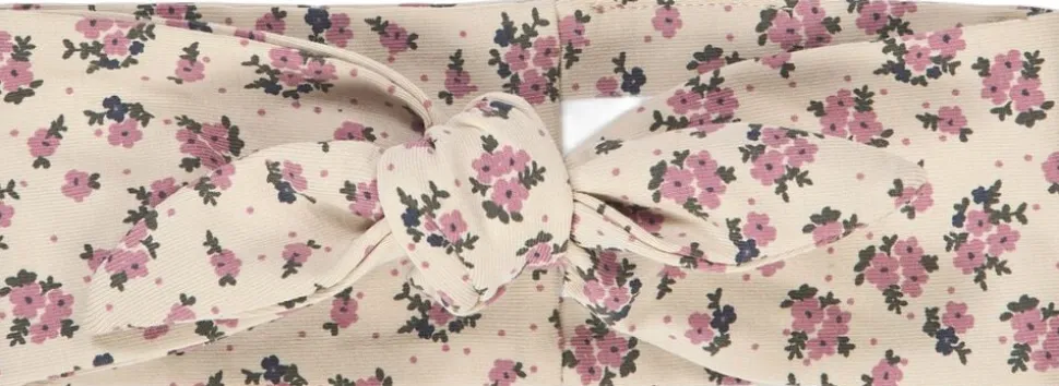 Sødt hårbånd med bundet sløjfe som kan justeres og bindes op efter behov og størrelse. Hårbåndet er fremstillet en en blød og strækbar single jersey med elastan for bedst mulig pasform og komfort. Hårbåndet er one-size. (GOTS Organic Certified by Ecocert Greenlife Lic. No. 151714). Produktet er GOTS organic- certificeret, hvilket betyder at bomulden er certificeret økologisk, og at der i alle andre processer som farvning, strikning og syning er taget de strengeste hensyn til miljøet. GOTS er internationalt anerkendt som den førende standard for forarbejdning af tekstiler af økologisk bomuld. Derudover tages der også hensyn til arbejdsforholdene, hos dem der producerer tøjet. Økologisk bomuld 95%, Elastan 5%