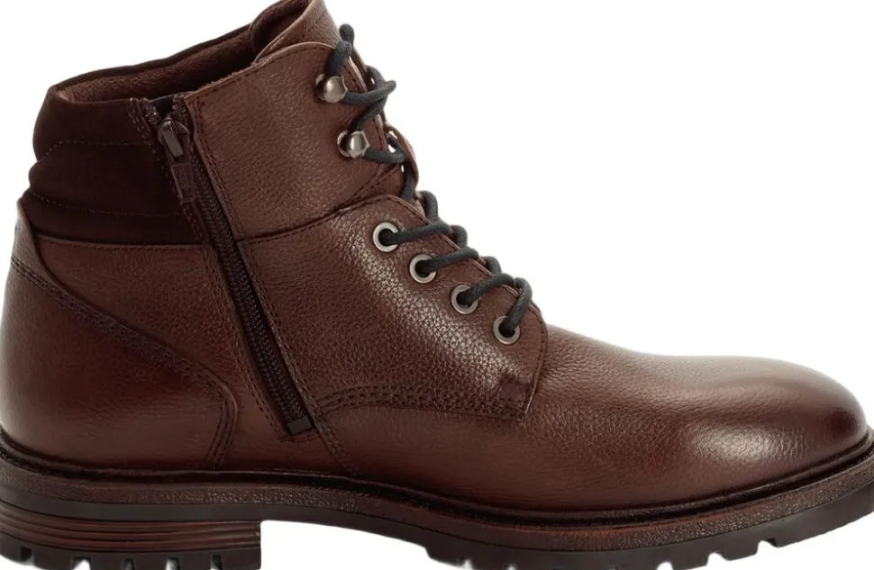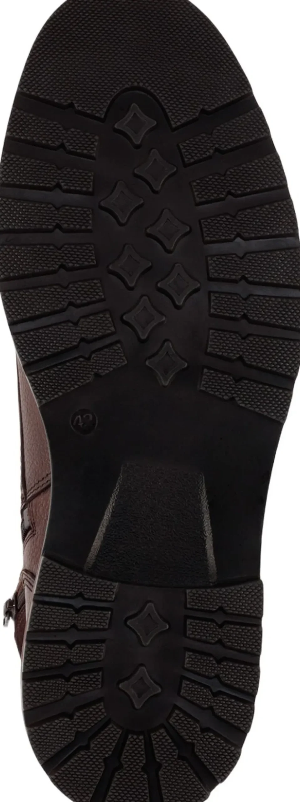 Snørrestøvle med let profil sål i flot mørkbrun skind. Støvlen er med indvendig lynlås og skindfoeret.