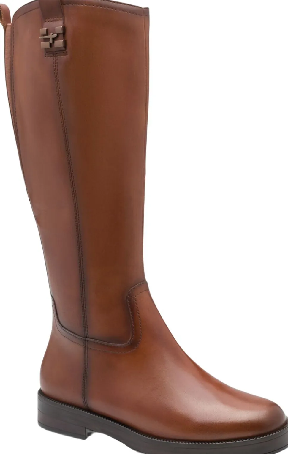 Langskaftet ridestøvle i cognac skind. Hælen har antislide. Skafthøjden er 36 cm og hælhøjden 30 mm