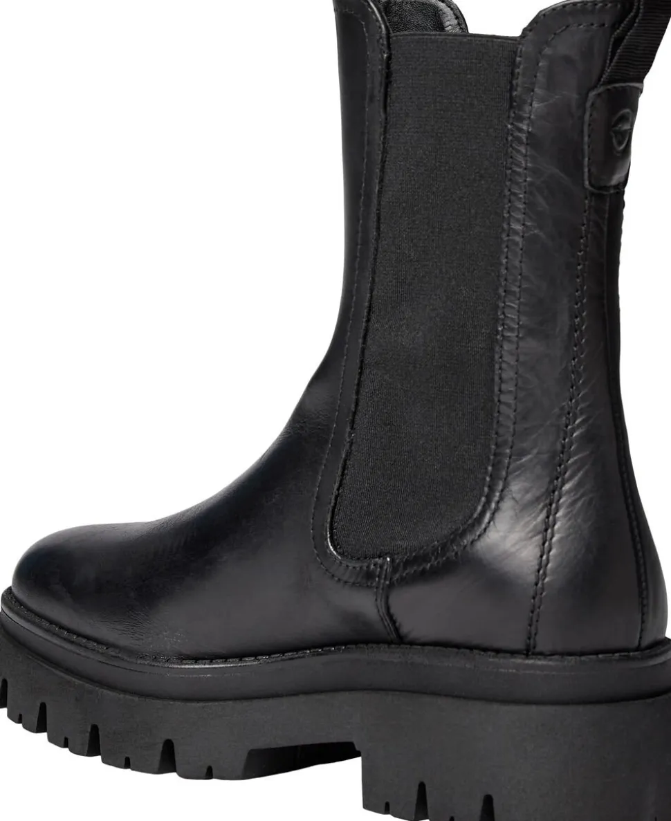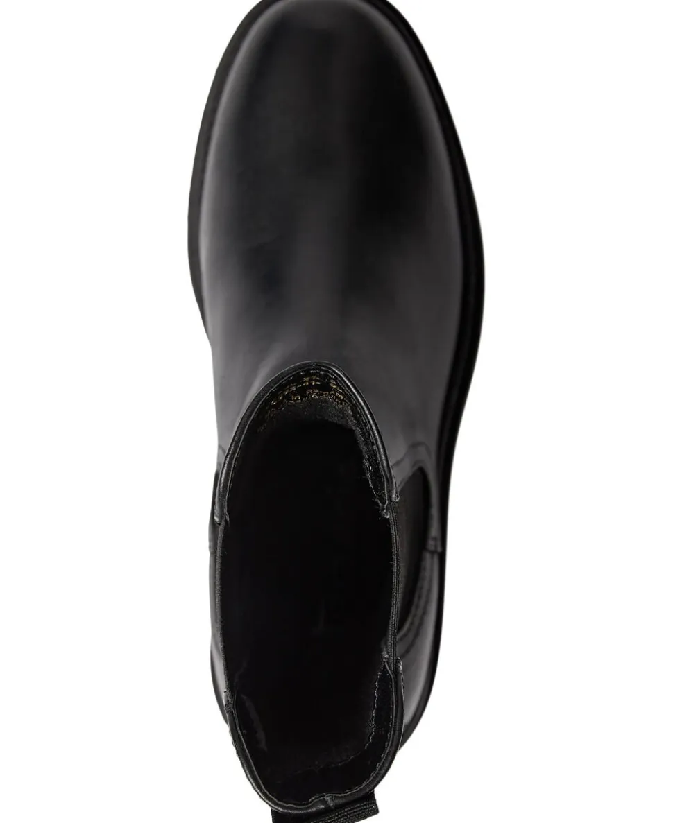 Enkel langskaftet chelsea støvle i sort skind med slankt skaft. Skafthøjden 19,5 cm og hælhøjden 50 mm