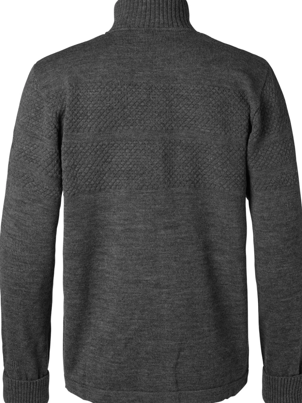 Mads Nørgaard – Copenhagens ikoniske sømandsstrik. Denne model har været en del af kollektionen i enormt mange år og er blevet en klassisker. Den har som sædvanlig en høj krav, lange ærmer og lynås. Den er strikket i en kraftig kvalitet af 100% uld.