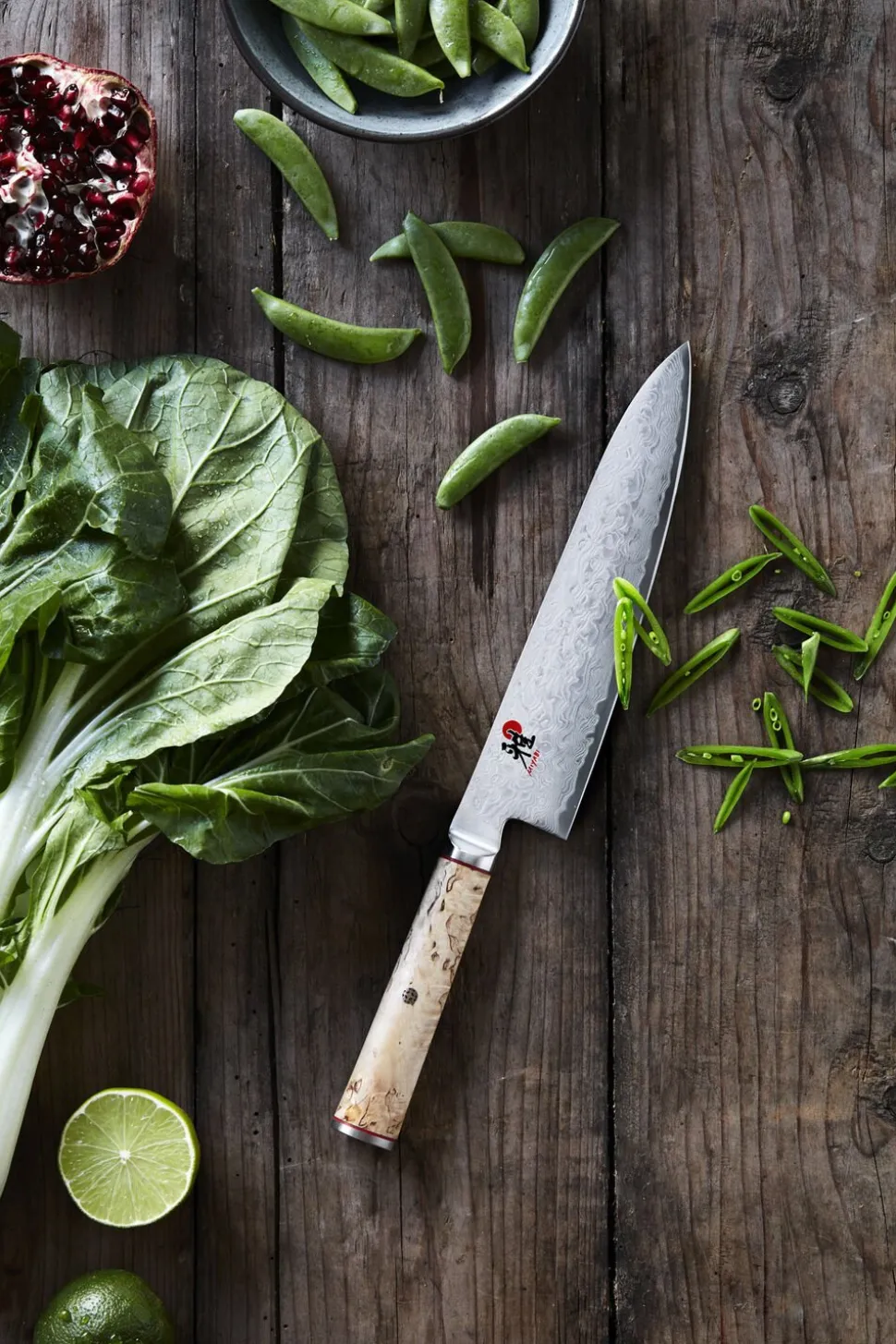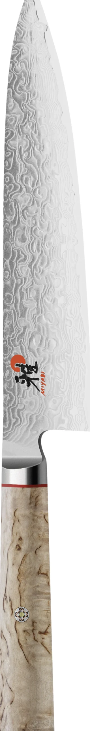 200 mm Gyutoh fra MIYABI 5000MCD er et yderst imponerende skæreredskab grundet knivens tynde, dog stabile blad med autentisk japansk profil. Knivens D skaft er lavet i masurtæ. Stålet har en Rockwell på ca. 63.