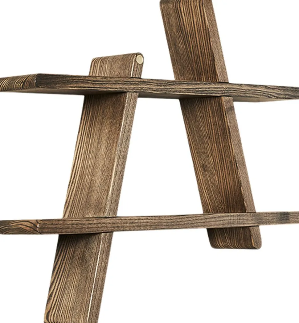 Hylden er fremstillet i massiv ask, der efterfølgende behandlet med en farvet olie. Den smukke mørke farve giver rummet et varmt, moderne og kontrastfuldt look. Gennem den røgede overflade kan man fornemme de naturlige årer i træet, som giver et smukt spil i hylden.