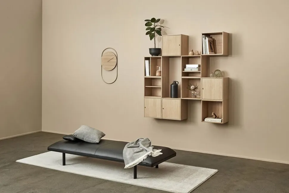 A-Wall Clock er et smukt vægur med et enkelt og grafisk udtryk. Uret fås i to udgaver – den ene med urskrive i sort malet træ og sort metal ring, den anden har urskrive i eg og elegant ring i messing.