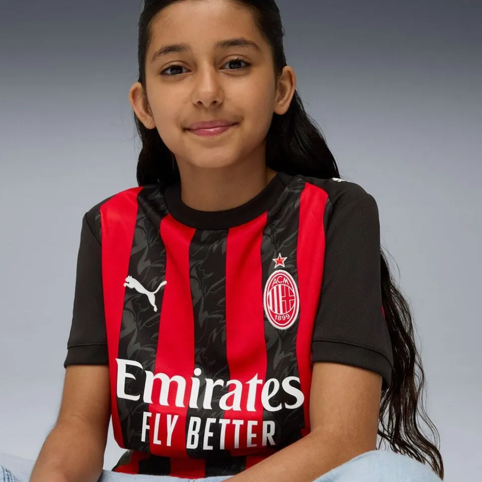 AC Milan 25/26 Hjemmebanetrøje fra Puma kombinerer ikoniske røde og sorte farver med et moderne, flammende design inspireret af klubbens grundlægger Herbert Kilpins vision om et “hold af djævle”. Trøjen er fremstillet i let og fleksibelt materiale med PUMAs dryCELL-teknologi, der effektivt transporterer sved væk og sikrer optimal åndbarhed via mesh-paneler. Med en regular fit og holdets emblem i en markant monokrom udgave over hjertet, udstråler denne trøje både stolthed og kampgejst. Perfekt til både kampdag og træning vis din støtte til Rossoneri med stil og komfort.