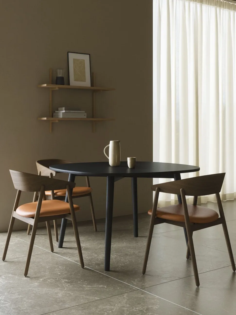 varianter med enten sort eller cognacfarvet lædersæde eller hold stolen helt enkel med finér sæde.