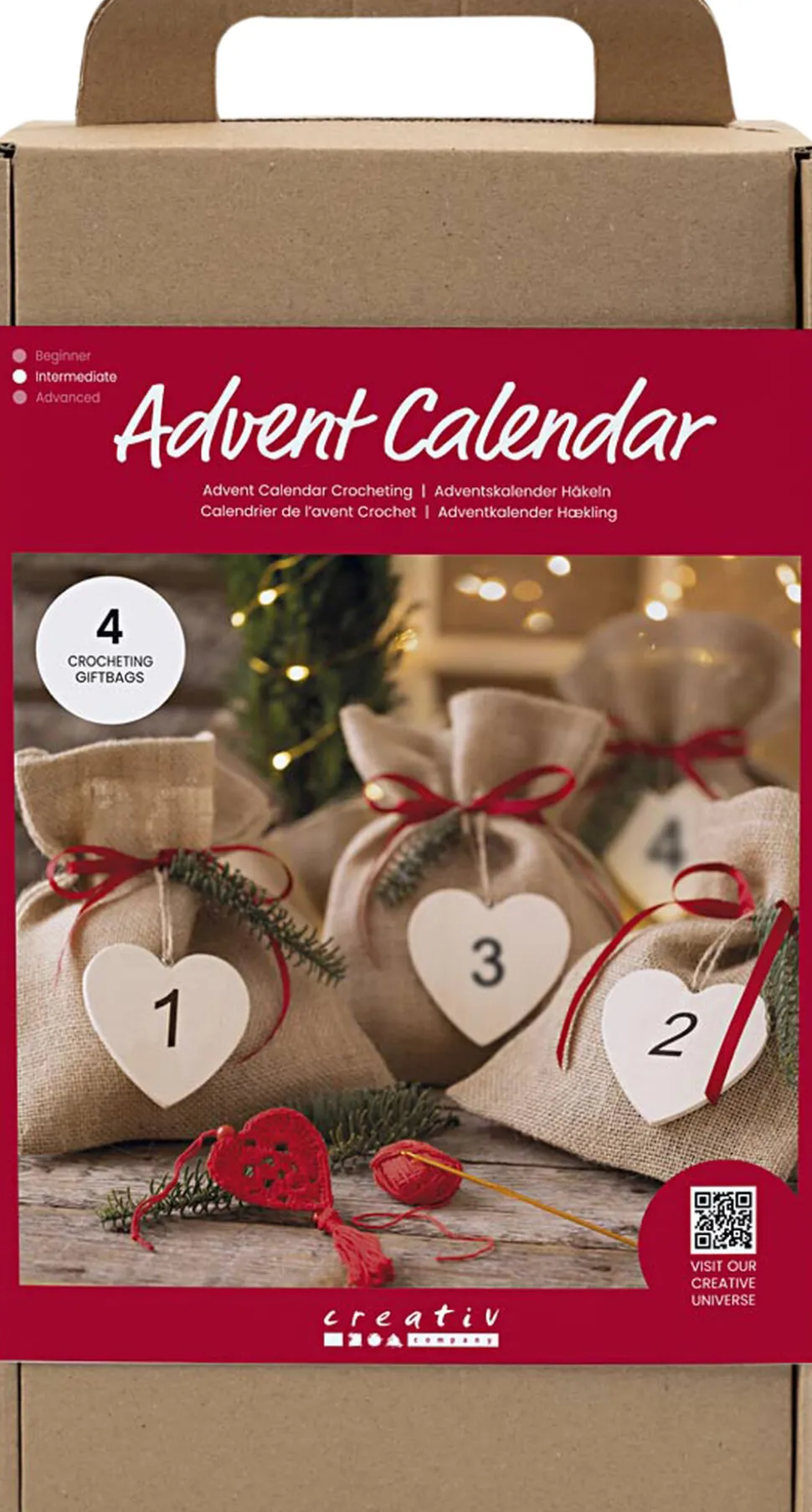 Årets adventskalender til hækleentusiasten. Overrask dig selv med et nyt, kreativt hækleprojekt hver søndag i advent. Indeholder alle de materialer du skal bruge, og al den vejledning du behøver. For børn og voksne er adventskalendere og julekalendere noget af det bedste ved julen. Det skaber en forventningsglæde i december og de fleste elsker glæden ved de små overraskelser, som venter på en. En julekalender er nemlig en påmindelse om, at julen nærmer sig, og en adventskalender er med til at gøre hver søndag i advent ekstra særlig. Er du vild med at hækle, er denne adventskalender lige noget for dig. Kalenderen består af fire gaveposer én til hver søndag i advent og med et sødt hækleprojekt i hver. Selve indholdet er en overraskelse, men vi garanterer, at du får masser af hæklesjov i december.