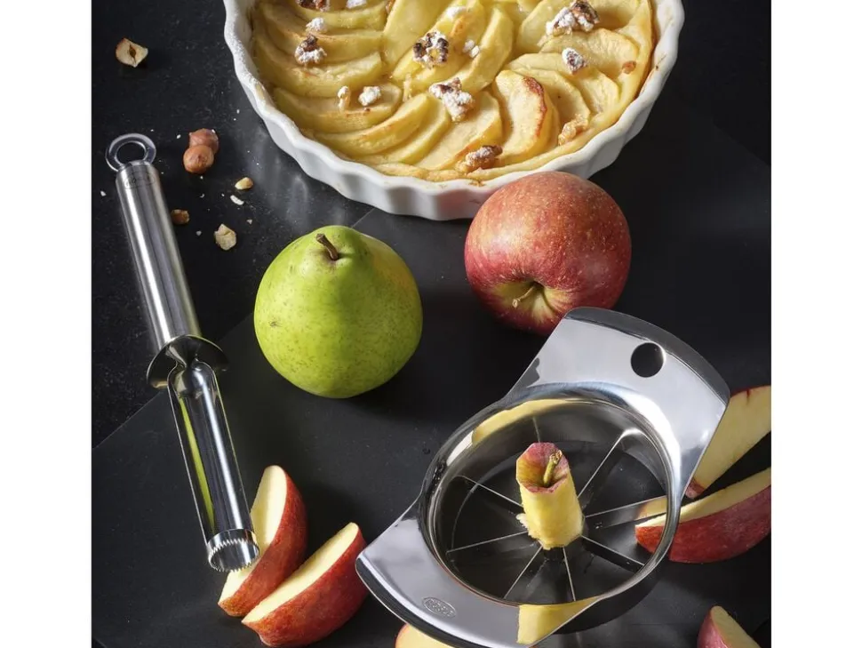 Frugt og grøntsager deles i otte lige store dele og kernen skæres ud separat. De brede håndtag giver et godt greb og sikrer optimal overførsel af pres. Ideel til æbler, pærer, kartofler m.m. Ikke egnet til opvaskemaskine. (R12743)