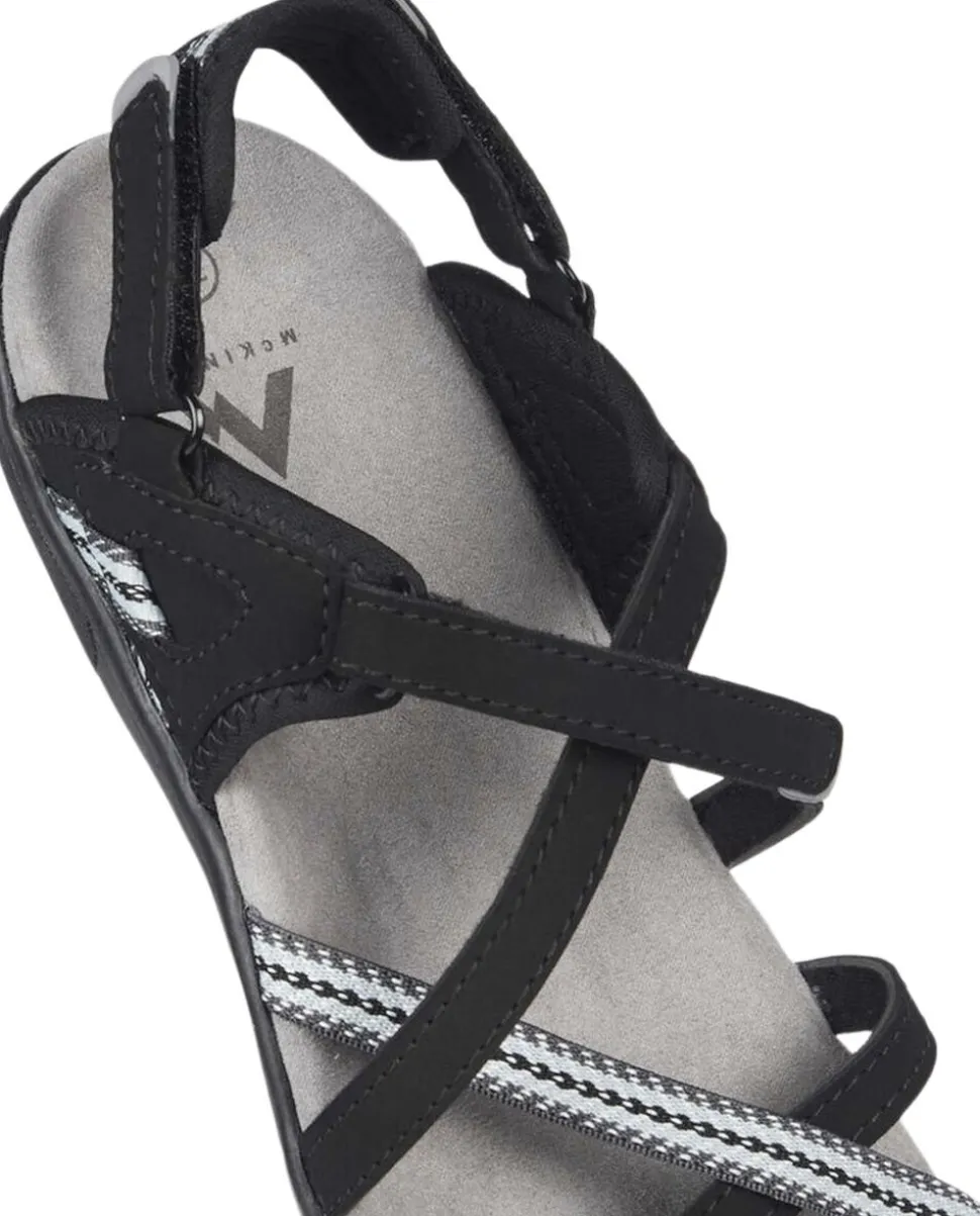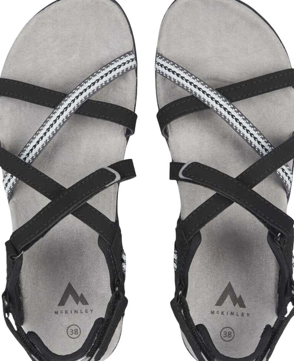 McKinley Ahtra Sandal er den ideelle følgesvend til udendørs eventyr og vandreture. Disse sandaler er designet til at give komfort og alsidighed under forskellige terrænforhold. De har en åndbar og holdbar overdel, der giver god ventilation og beskyttelse mod elementerne. Den justerbare rem ved vristen sikrer en tætsiddende og behagelig pasform, mens den polstrede indersål tilbyder ekstra komfort under lange vandreture. Ydersålen er lavet af skridsikkert gummi, der giver godt greb på forskellige overflader og forhindrer glid. McKinley Ahtra Sandal er lette og fleksible, hvilket gør dem nemme at pakke og transportere. Uanset om du vandrer i skoven, udforsker kysten eller bare slapper af i naturen, vil McKinley Ahtra Sandal være dine pålidelige følgesvende.