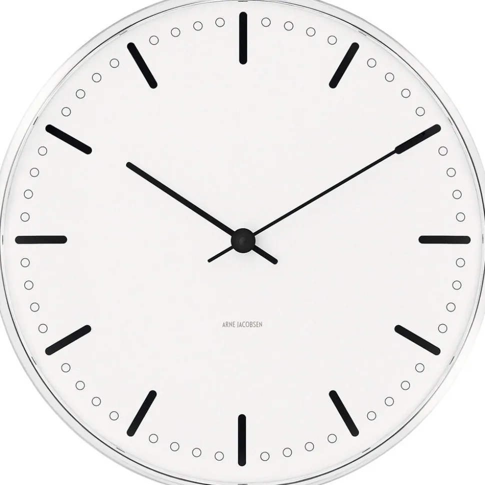 City Hall væguret så sit lys da Rødovre Rådhus 1956 blev indviet. Uret er inspireret af de internationale strømninger, der prægede Arne Jacobsen på det tidspunkt og den dag dag et moderne udtryk. Arne Jacobsen er kendt for sin kompromisløse tilgang til arkitektur og design. Med fokus på helheden designede han designede også møbler, tekstiler, lamper og andet interiør til sine bygninger. Jacobsens ure står som smukke eksempler på denne helhedsorienterede tilgang til en opgave. Uret findes også to mindre størrelser på 16 og 21 cm.