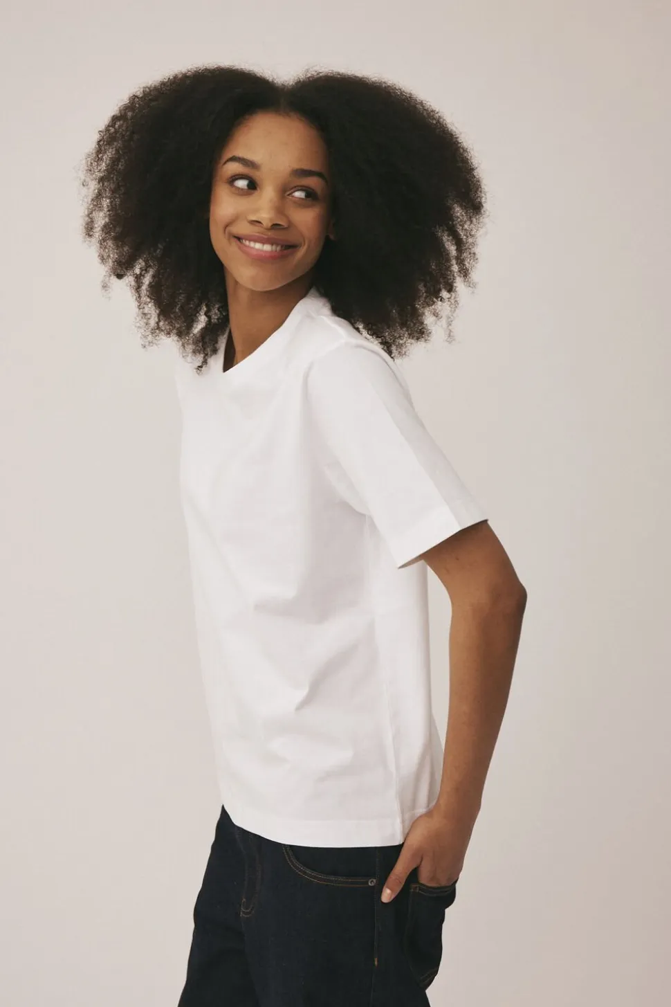 T-shirt fra Magasin du Nord Collection i den blødeste kvalitet af 100% økologisk bomuld med GOTS-certificering. T-shirten er enkel i modellen med korte ærmer, rib i den runde halsudskæring samt ‘Regular Fit’. En skøn T-shirt i en lækker kvalitet.