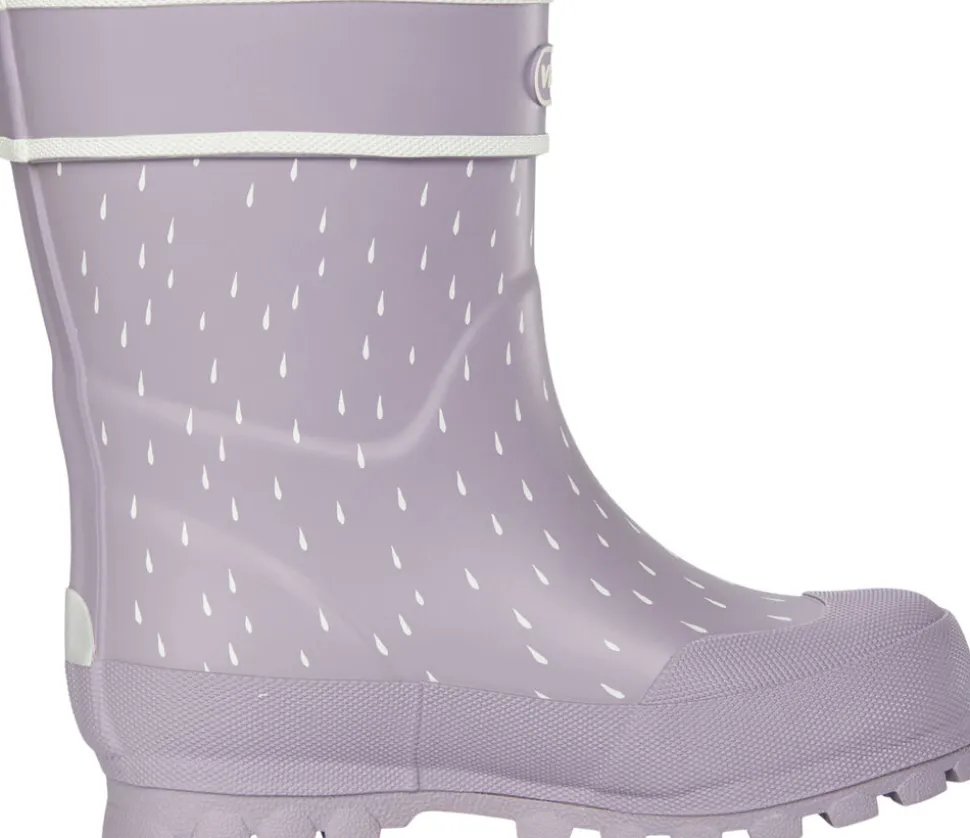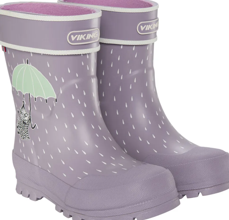 Mød Alv Jolly Moomin, vores “bedst i test” støvledesign til de yngste Vikingfødder – nu med den elskede Mumitrold! Denne gummistøvle i retrostil har mange moderne detaljer som dobbeltforseglede sømme, en forstærket snude, refleksdetaljer og et dybt sålmønster, som giver maksimalt fodfæste på våde dage. Støvlen har standardpasform, et syntetisk tekstilfor og en udtagelig indlægssål, så den hurtigt kan tørre. Støvlen er vegansk og PVC-fri, er håndlavet af naturgummi og fås i forskellige pastelnuancer med Mumitrolden dansende i regndråber!