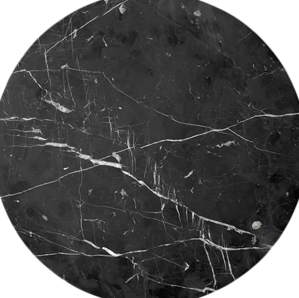 Androgyne Side Table, som kan kendes ved dens munter dog elegante silhuet, var først designet til Audo Space caféen, men blev hurtigt produceret til en større målgruppe. Bordets raffineret marmorplade og kontrasterende brede, flade ben gør det nemt at matche bordet i adskillige indretninger. Androgyne Side Table var designet af den København-baseret norske arkitekt og designer, Danielle Siggerud. Den fås i sort og elfenbenshvid, med laserskåret stålben og en fantastisk marmorplade, der kan købes separat. Bordets fornemmelse for balance, dimensioner og blandet materialer giver en fornemmelse af harmoni. Denne blanding af maskulin og feminin, eller rettere sagt androgyni, er hvad giver bordet dets navn. Kernen i bordet er dets dualitet: det er elegant dog kraftigt. Bordet kan bruges til alt fra små restauranter og soveværelser til udstillingsrum. Glansen fra den slebet marmorflade i forbindelse med det matte stål resulterer i en alsidig og visuel identitet, der er både modernistisk og industriel. Den lille flade hænger knap nok over benene, hvilket skaber en overordnet fornemmelse af balance. The Androgyne Side Table er ikke kun nyttig, den er skulpturel og tilføjer en artistisk silhuet til ethvert rum.